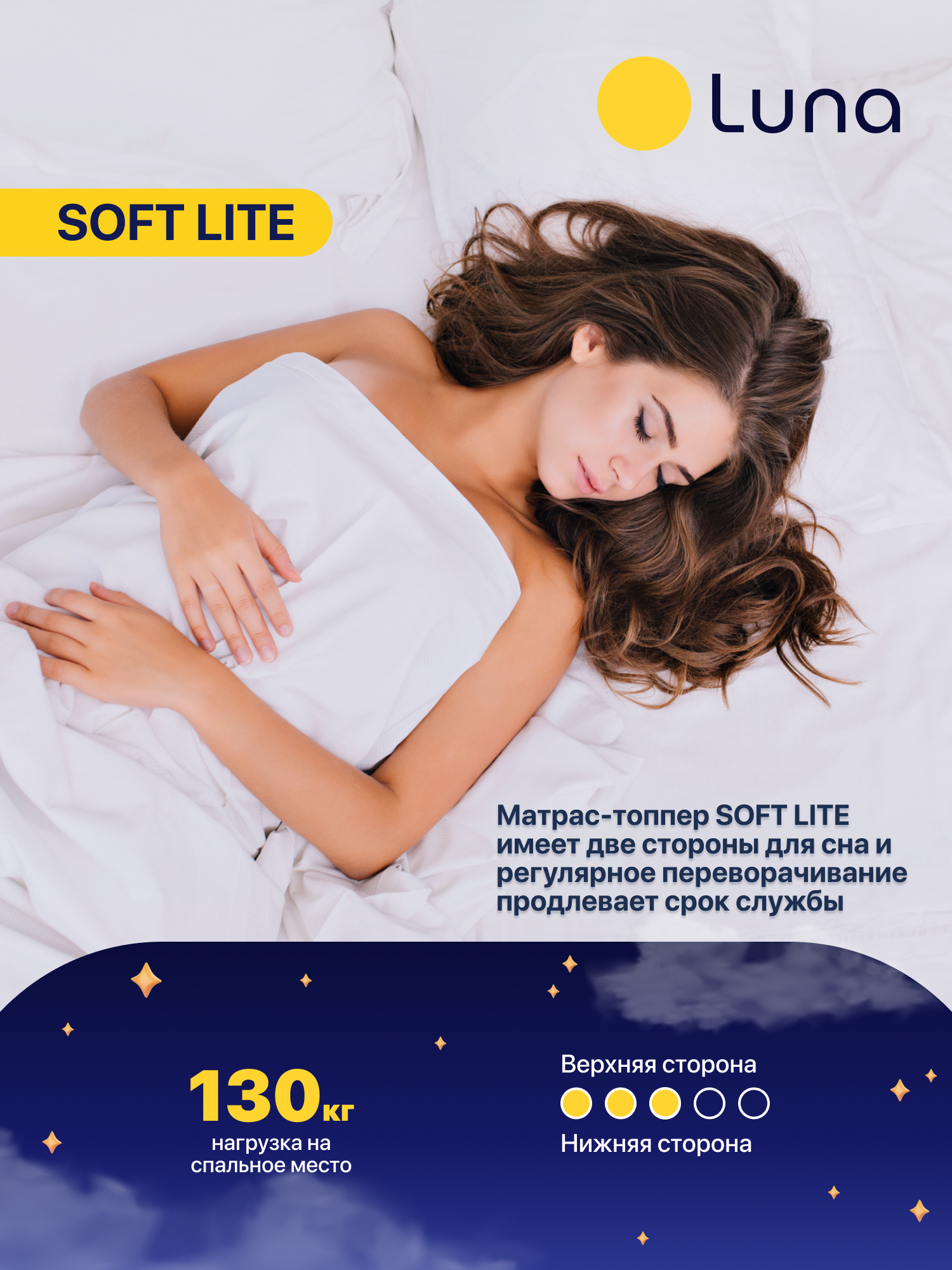 Матрас-топпер Luna Soft 130х200 см двухсторонний, анатомический, высота 6 см