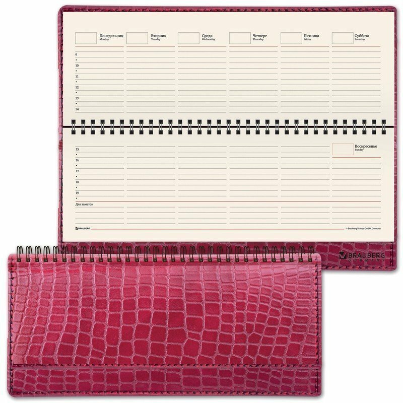 Планинг недатированный 60 листов, на гребне, BRAUBERG Alligator, под матовую крокодиловую кожу