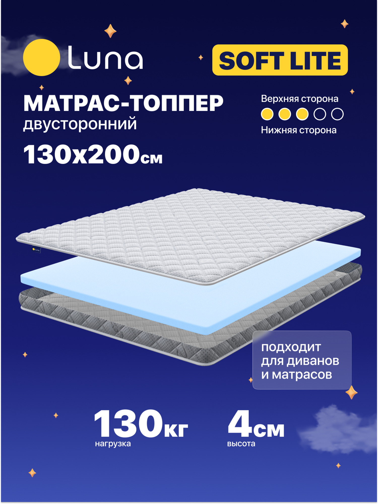 СохранитьМатрас-топпер Luna Soft Lite 130х200 см двухсторонний, анатомический, высота 4 см интересное: