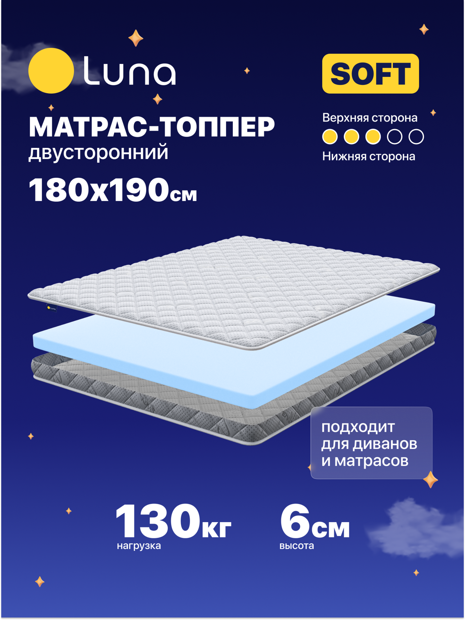 Купить Матрас-топпер Luna Soft 180х190 см двухсторонний, анатомический, высота 6 см