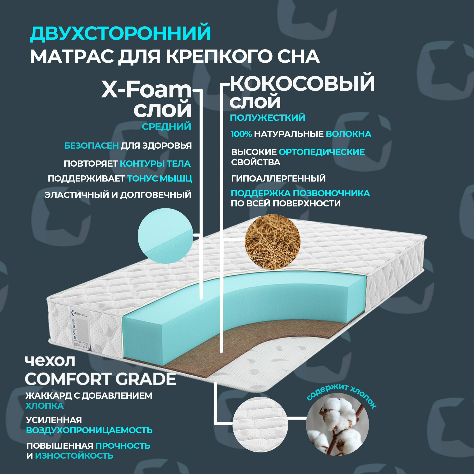 Матрас X-Sleep Roll Alto 200х195, ортопедический, беспружинный, разная жесткость сторон