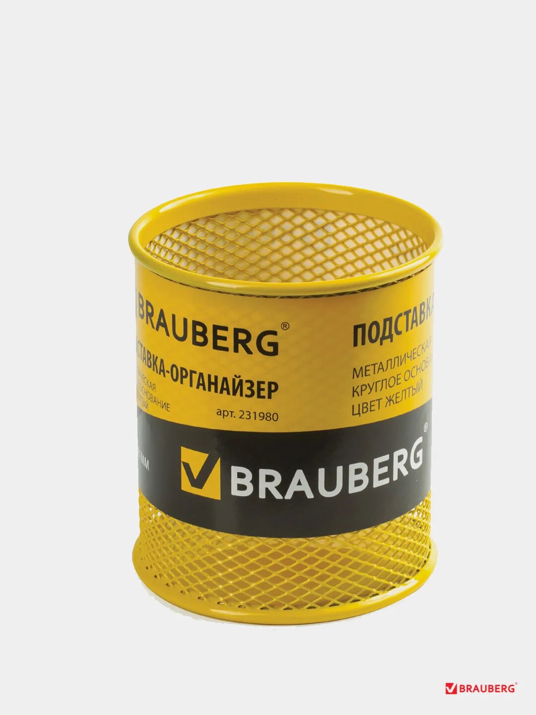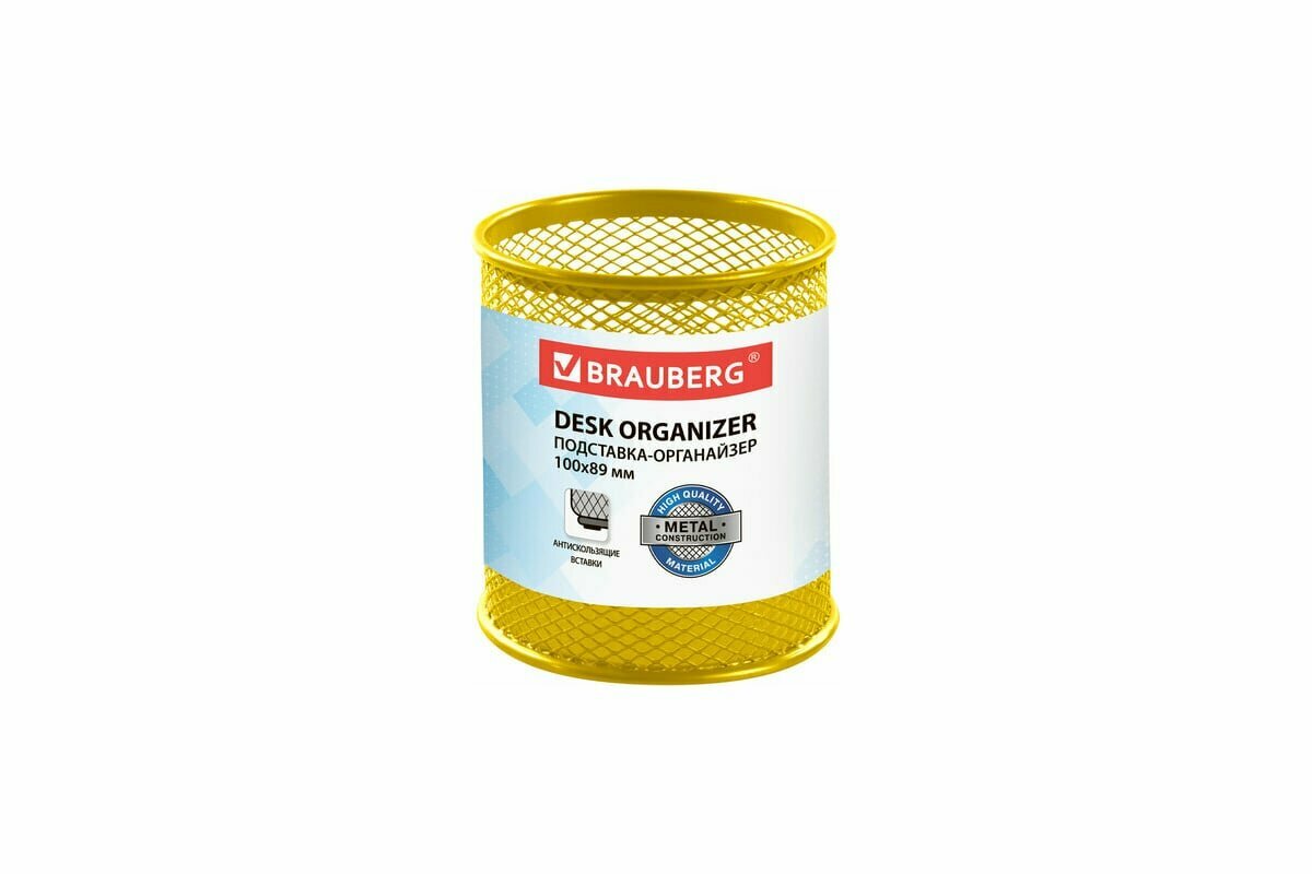 Купить Подставка-органайзер BRAUBERG "Germanium", металлическая, круглое основание,100х89 мм, желтая, 231980