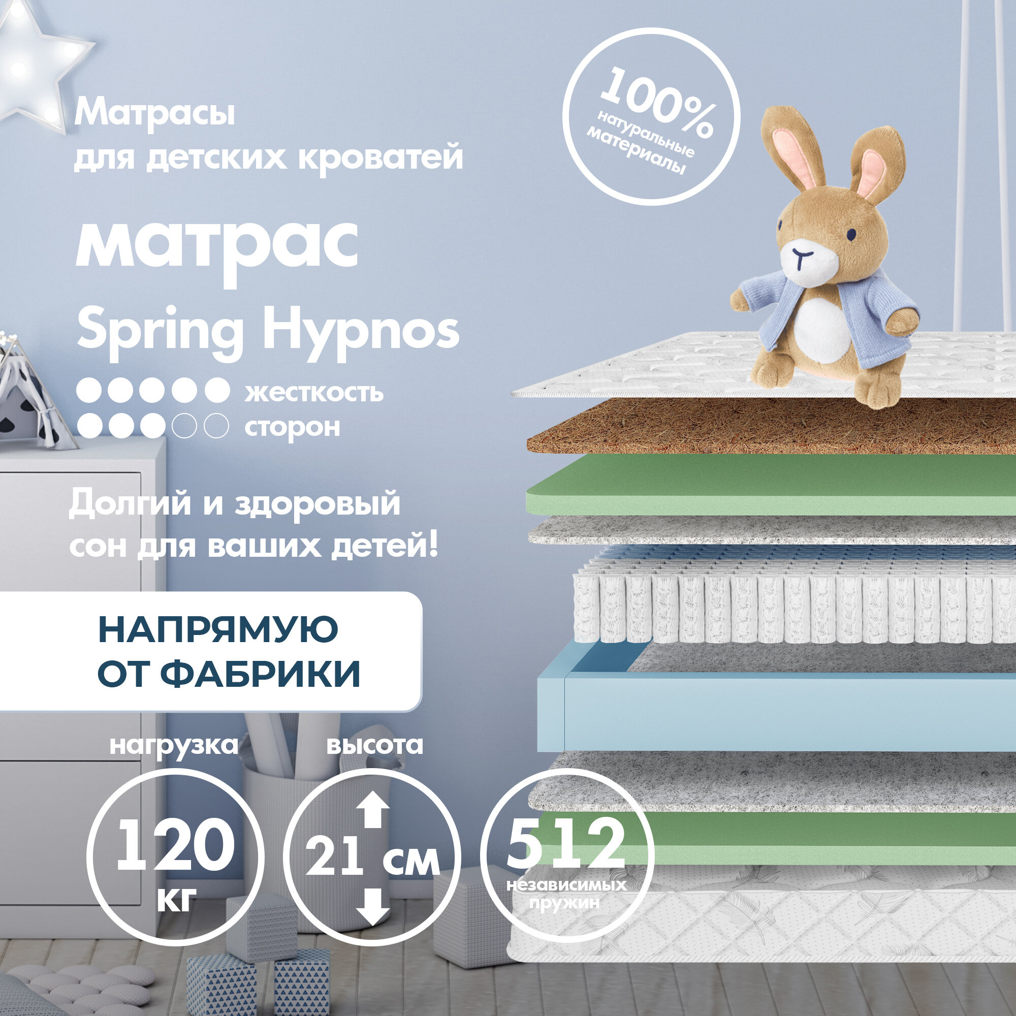 Матрас Dreamtec Spring Familia 60х120, ортопедический, детский, независимые пружины, разная жёсткость сторон