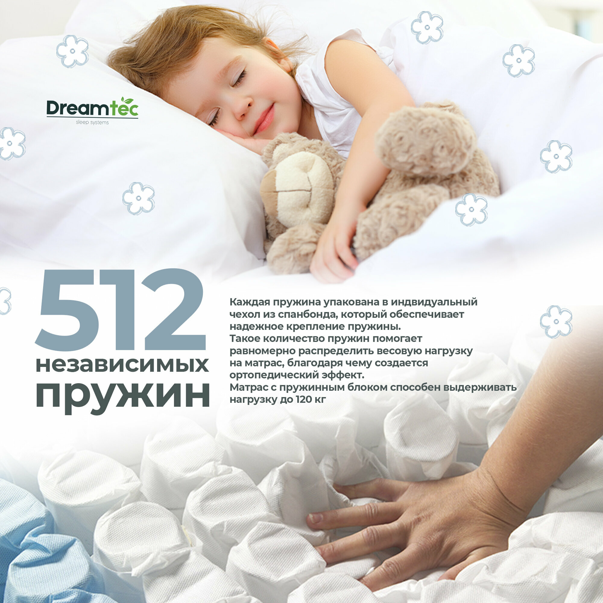 Матрас Dreamtec Spring Familia 120х190, ортопедический, независимые пружины, разная жёсткость сторон