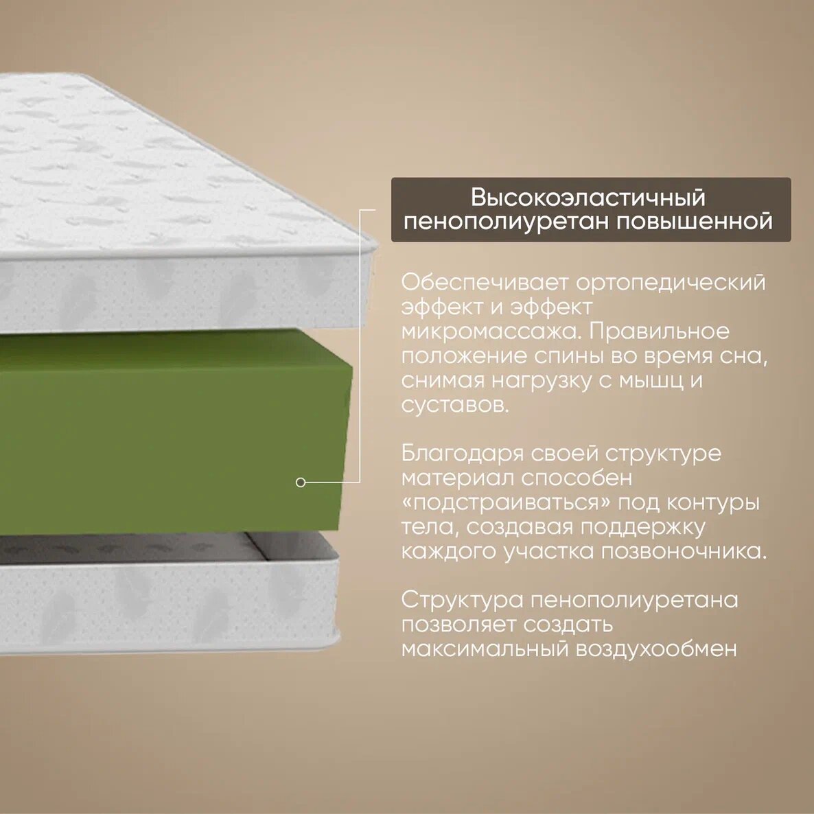 Беспружинный матрас Eco Mattress Soft 10Sk 140х190 см полуторный ортопедический, высокоэластичная пена, пенопулиуретан, в рулоне