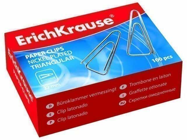 Купить Скрепки ERICH KRAUSE, 25 мм, металлические, треугольные, 100 штук, в картонной коробке, 24869