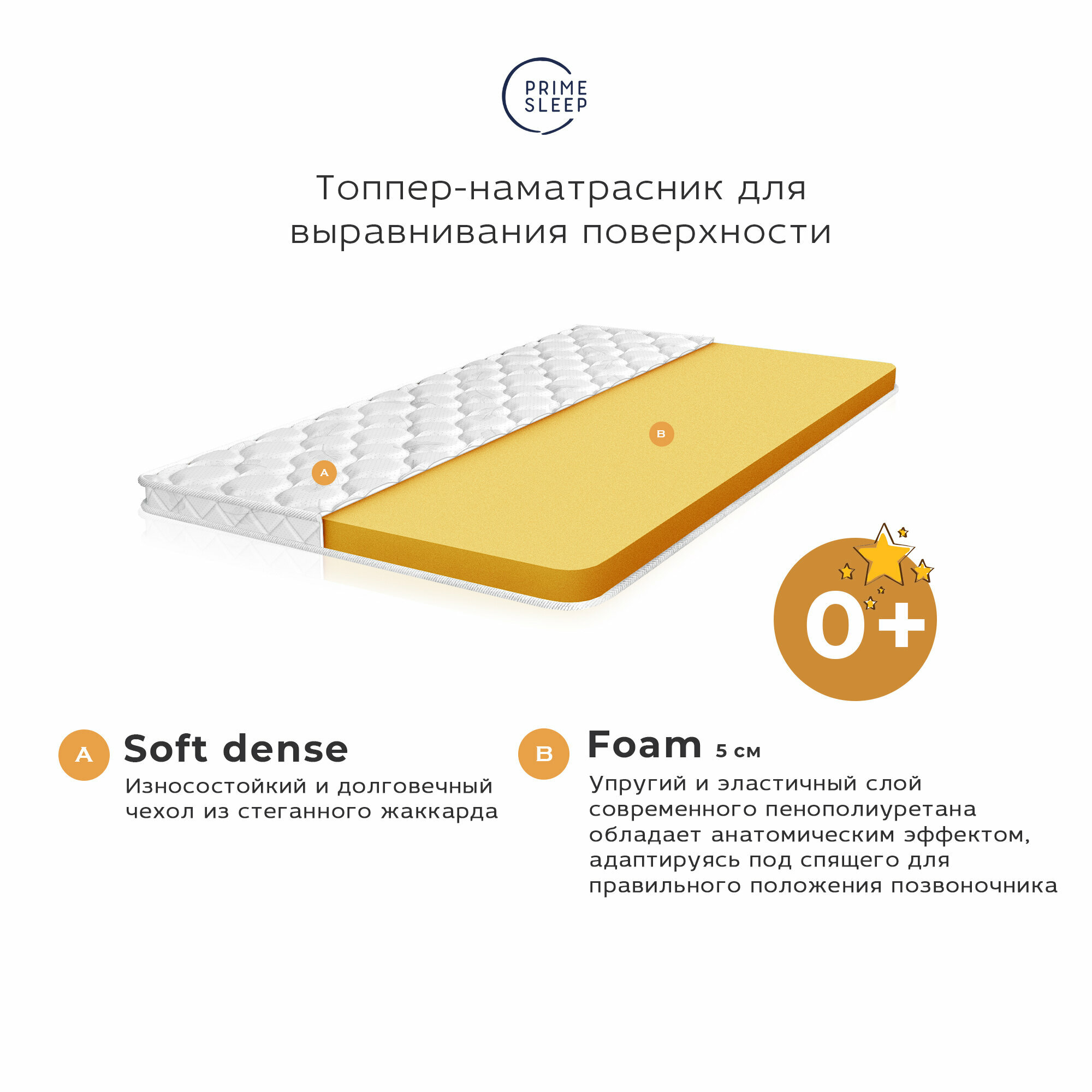 Матрас-топпер Prime Sleep Confi Sonno 145х195, на кровать, на диван, беспружинный