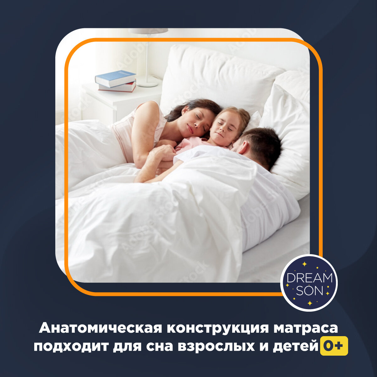 Матрас 195х195 беспружинный, средней жесткости, двуспальный, в кровать, DreamSon Real Support