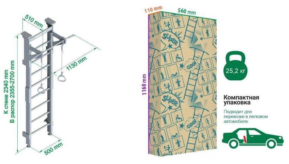Да, и очень высоко расположена перекладина, причем под самым потолком - стук головой о потолок гарантирован! И это не регулируется. Наверное, конструкторы не представляют себе, зачем нужна шведская стенка. М.б. для сушки белья? |