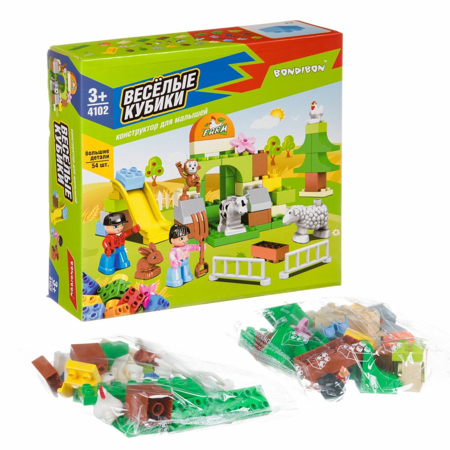 Купить Конструктор BONDIBON Для малышей ВВ4102 Веселые кубики Ферма