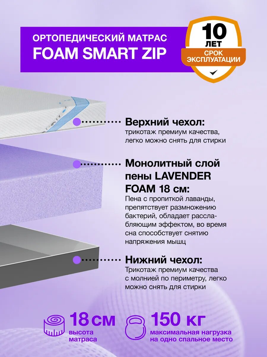 Матрас 160×200 на кровать, беспружинный, ортопедический, Foam Smart Zip интересное: