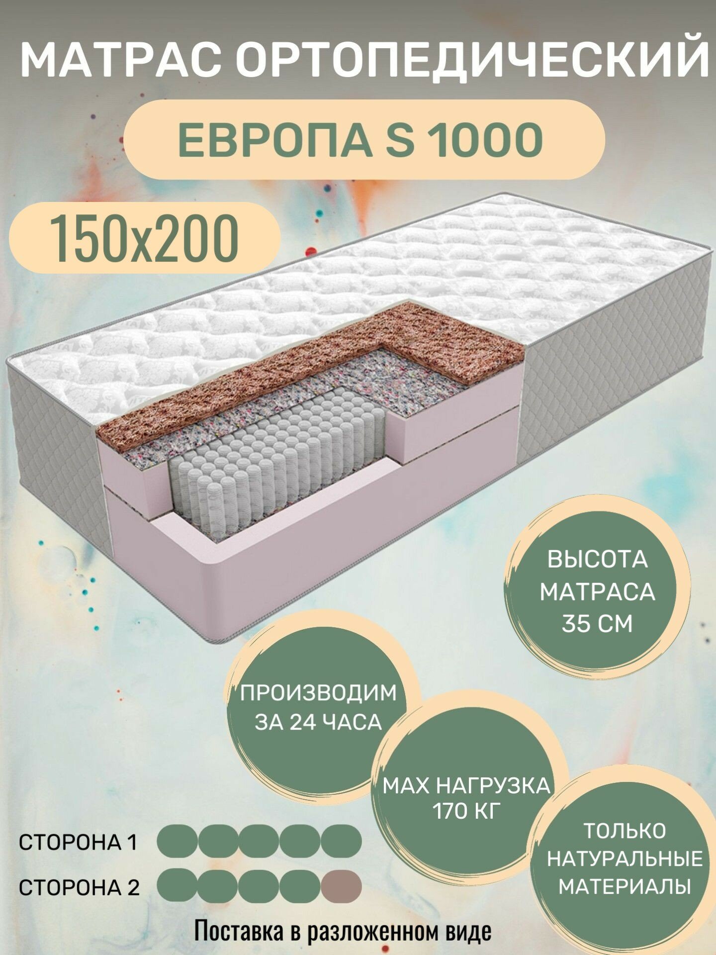 Матрас ортопедический VITA Европа (150х200), независимые пружины S 1000 интересное: