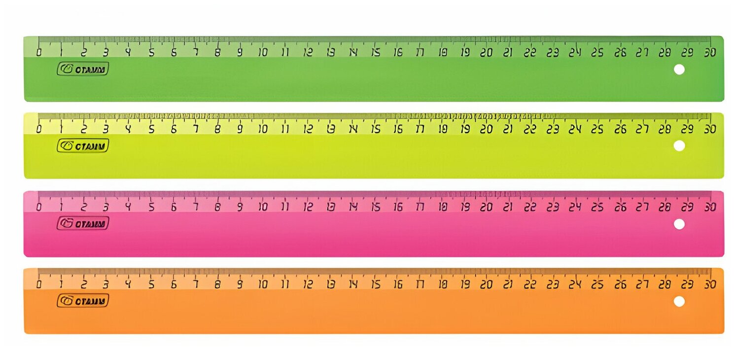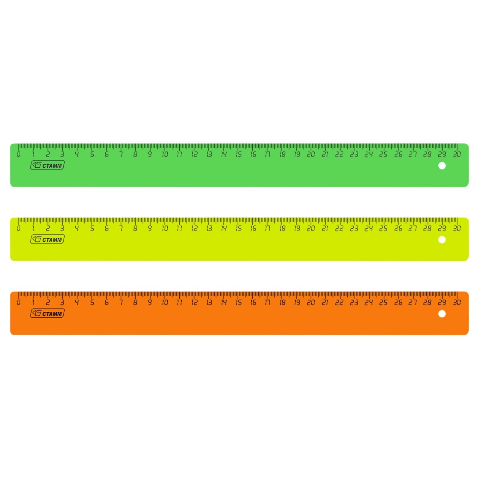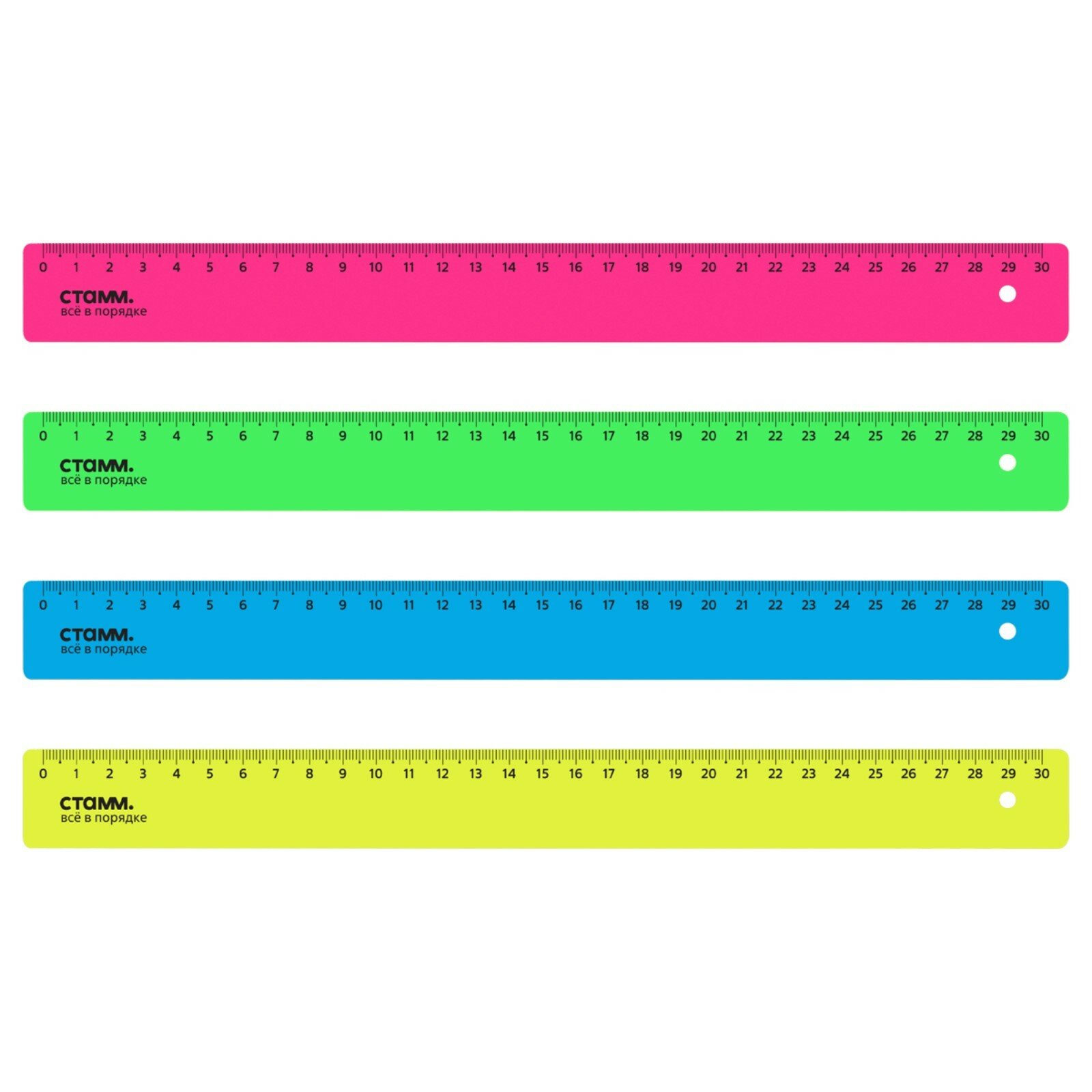 Линейка 30см Стамм, пластик, непрозрачная, неоновые цвета ассорти