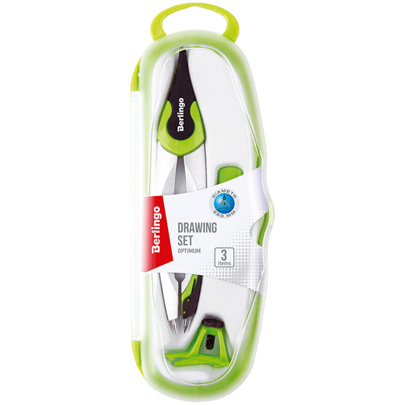 Купить Готовальня 3 предмета Berlingo Optimum, циркуль 135мм, пластиковый футляр, зеленый (DS_00303b)