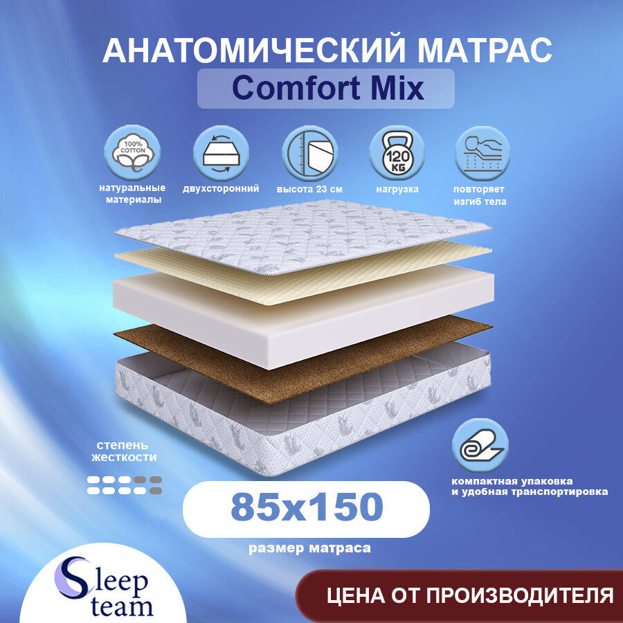 СохранитьМатрас детский SleepTeam Comfort Mix 85х150, высота 23 см, беспружинный с массажным эффектом, односпальный интересное: