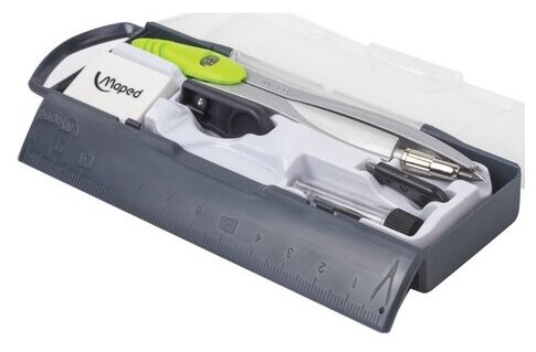 Готовальня Maped Study с циркулем из цинкового сплава 5 предметов в пластиковом футляре 119405 .