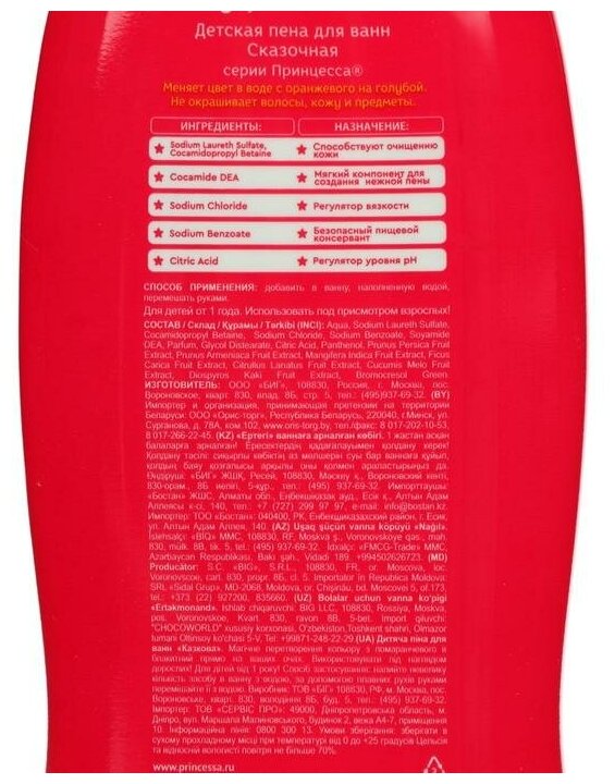 Принцесса Пена для ванн Сказочная, 250 мл интересное: