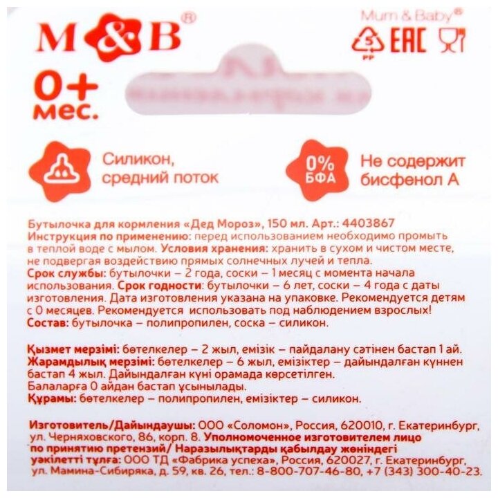 СохранитьMum&Baby Бутылочка для кормления «Дед Мороз», 150 мл цилиндр, подарочная упаковка, с ручками интересное: