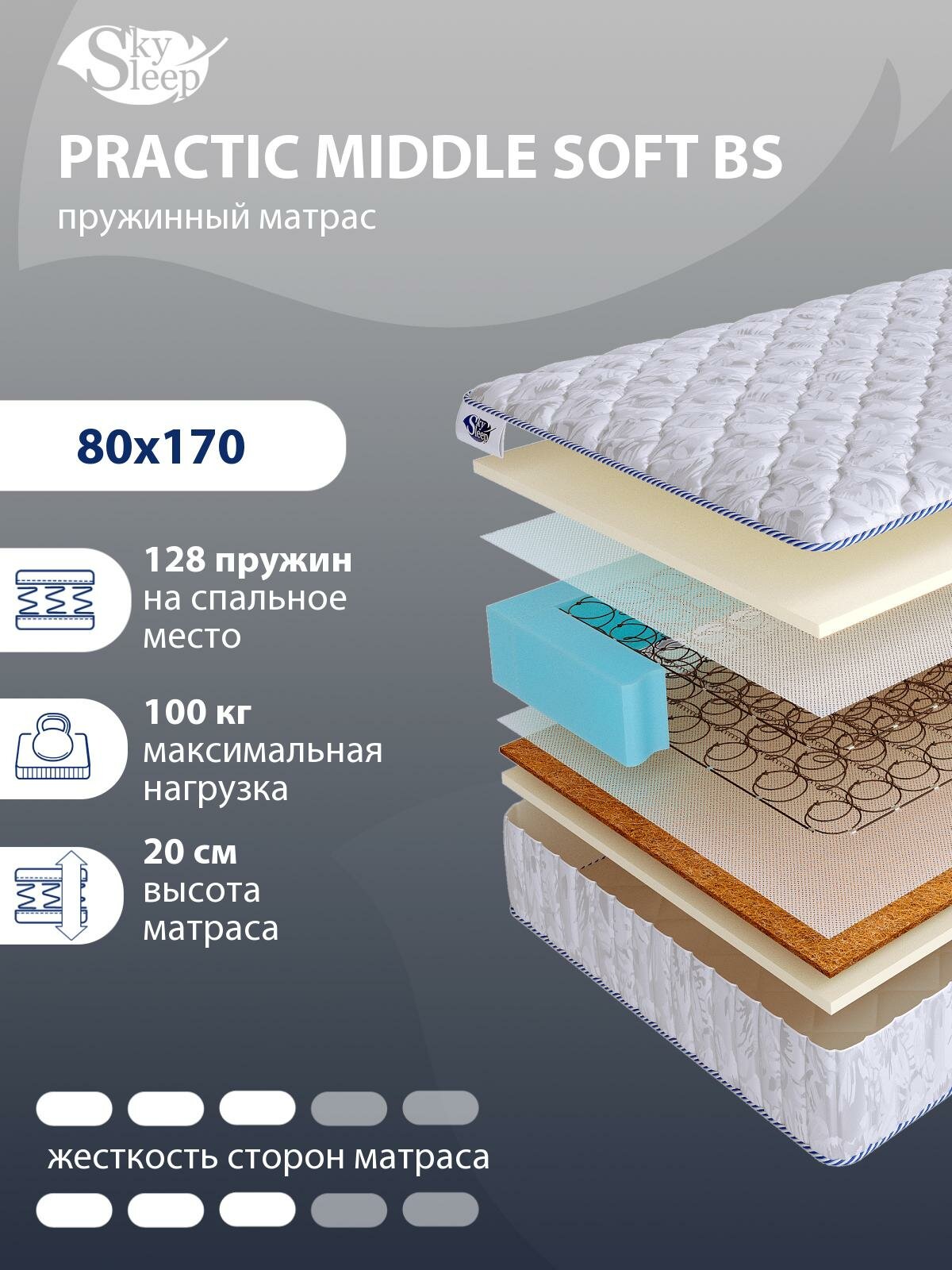 Купить Ортопедический матрас SkySleep PRACTIC MIDDLE SOFT BS с зависимым пружинным блоком для кровати тахты 80x170
