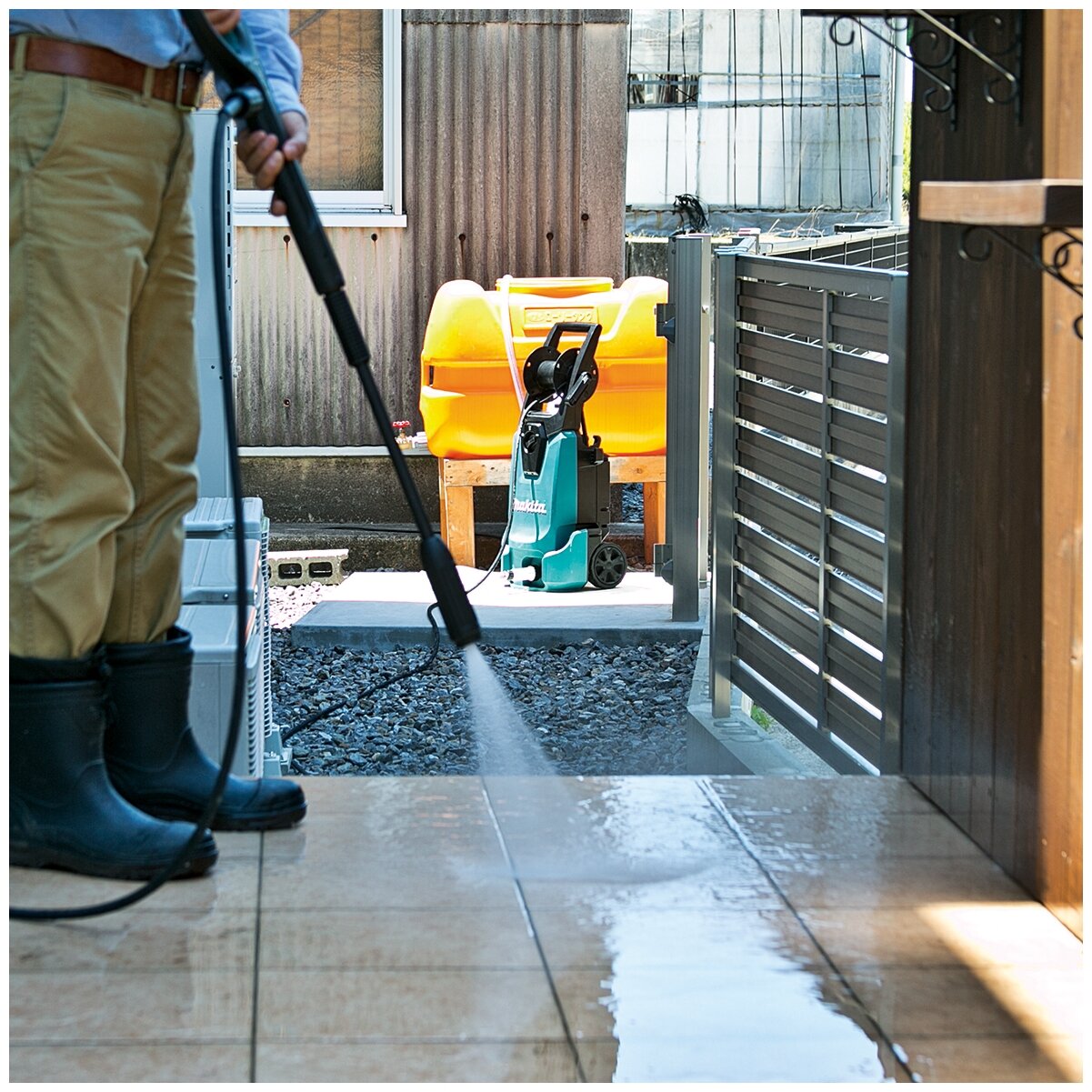 Makita Мойка выс/давл,1800Вт,130атм,450л/ч,12.7кг,кор,шланг-10м,исп чист ср-ва,барабан д/намотки шла