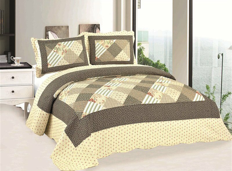 Комплект с покрывалом Tango Patchwork 333, 230 х 250 см, коричневый/желтый