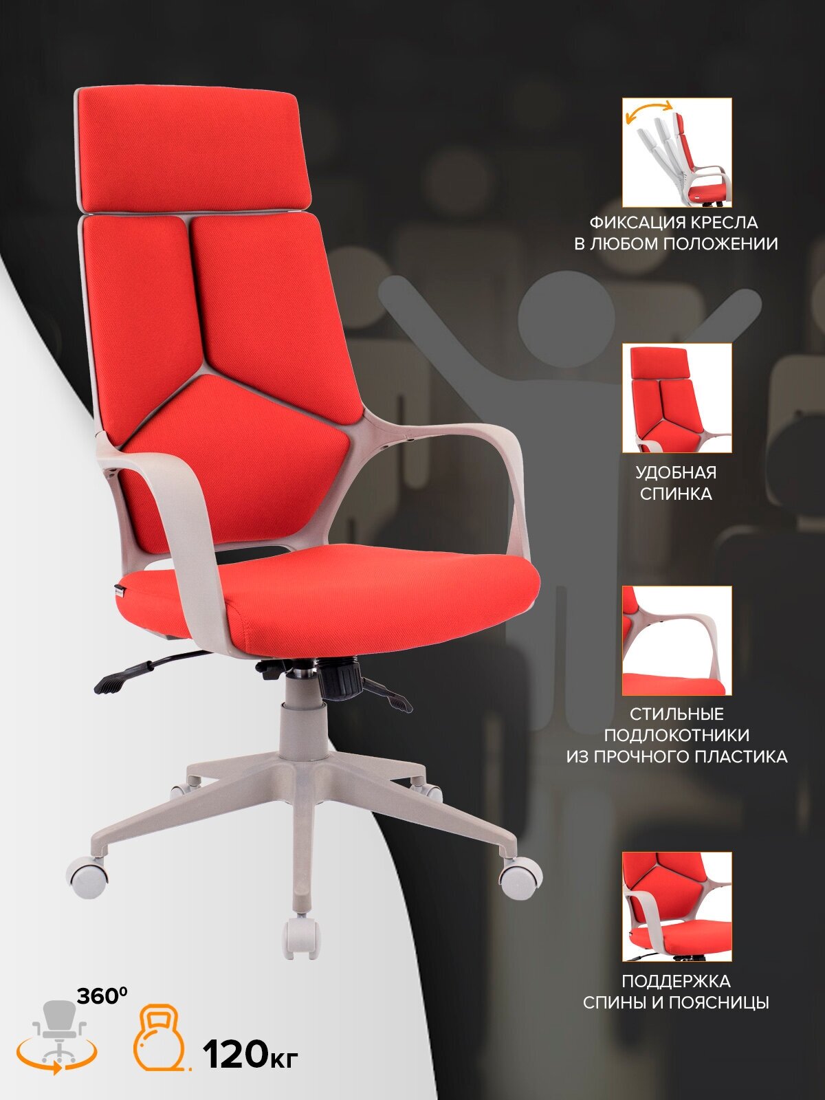 Кресло офисное Everprof Trio Grey TM ткань - красное