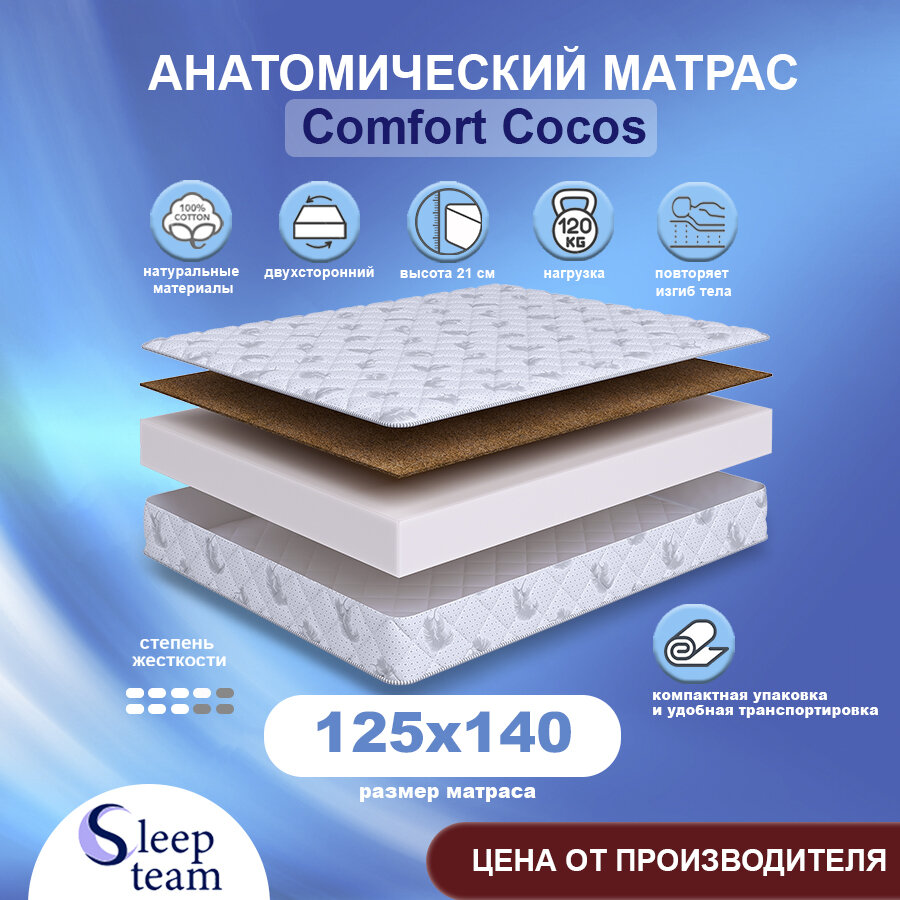 Купить Матрас SleepTeam Comfort Cocos 125х140, беспружинный, для кровати, высота 21 см, полутороспальный