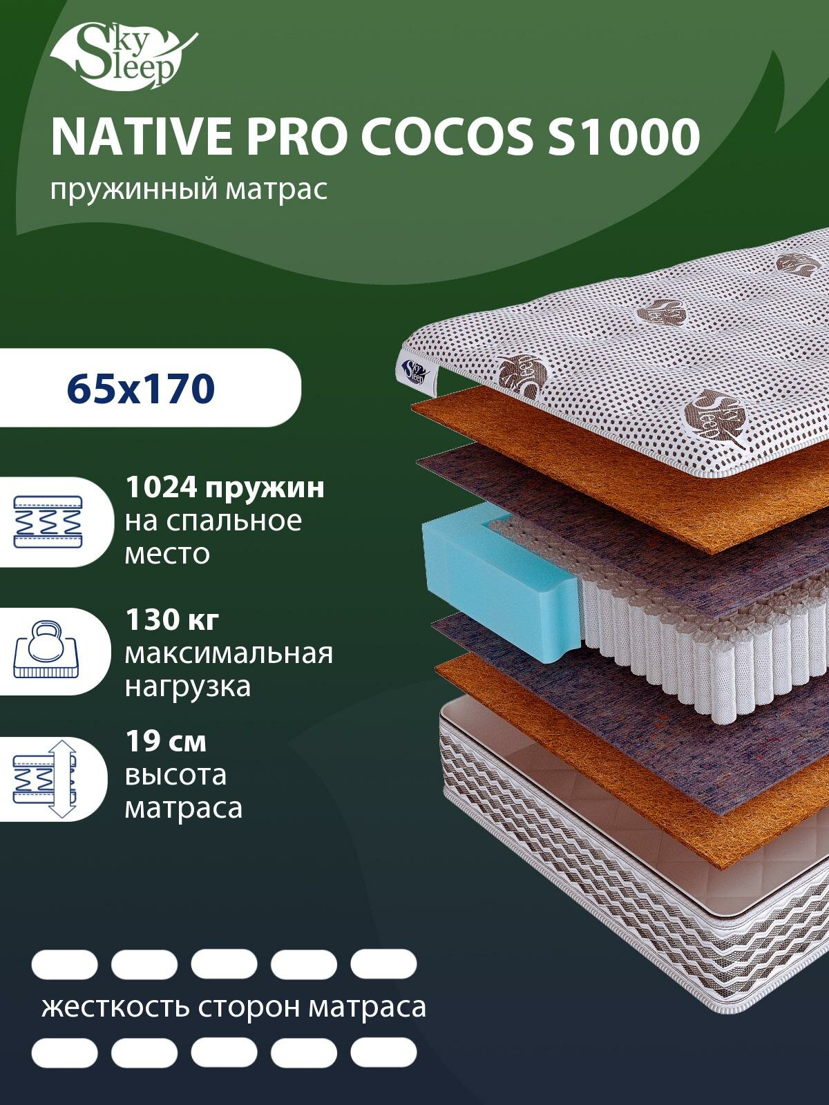 СохранитьМатрас 65x170 ортопедический пружинный SkySleep NATIVE PRO COCOS S1000 интересное: