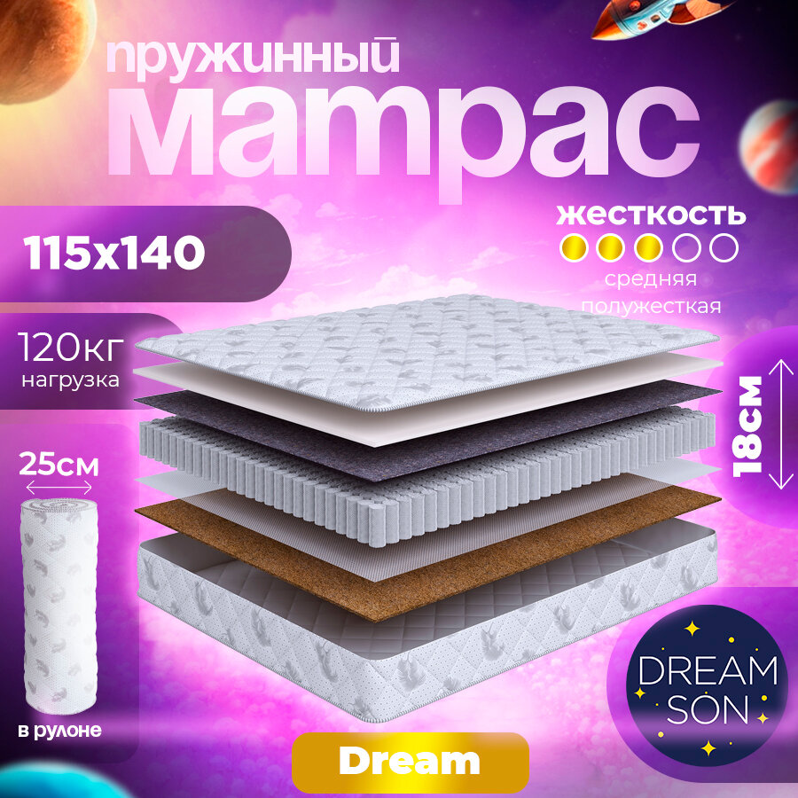 Матрас 115х160 пружинный, умеренно жесткий, односпальный, в кровать, DreamSon Dream