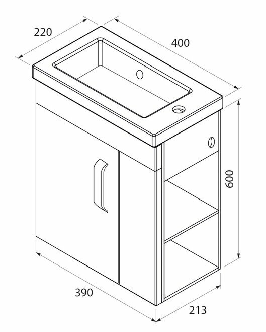Тумба Iddis Torr 40 подвесная, белая полки справа, с раковиной (2 коробки) (TOR40WRi95K)