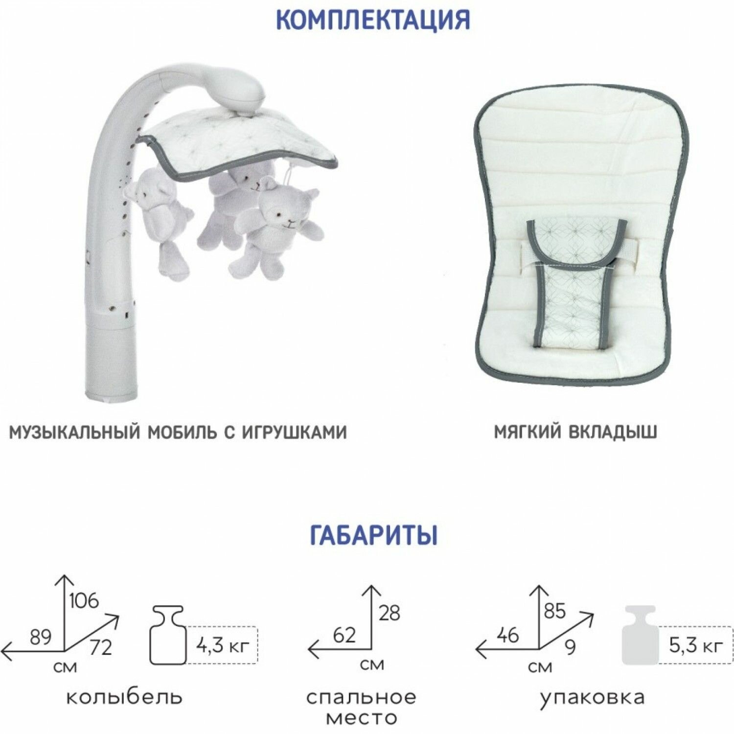 | Плюсы: | Легкая, компактная, в комплекте идёт мобиль с игрушками и подушечка. |