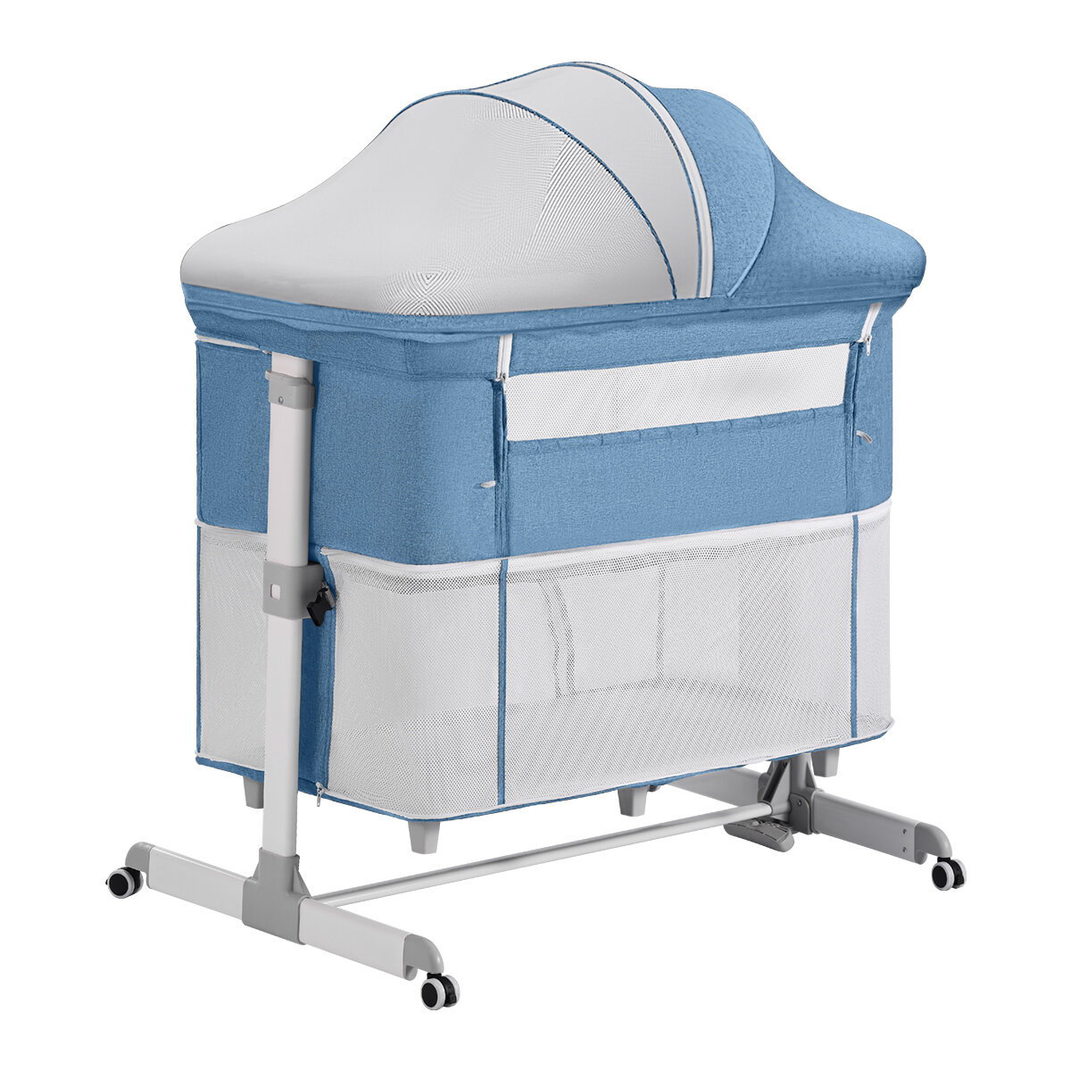 Купить Детская кроватка для новорожденного с маятником Dearest приставная с матрасом, с москитной сеткой, манеж, голубой
