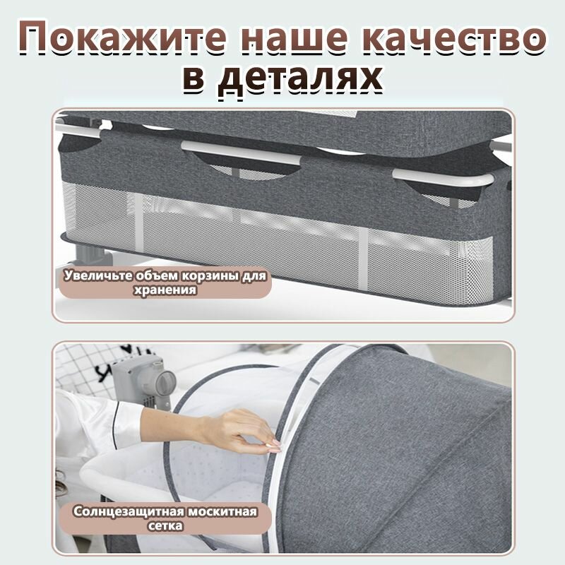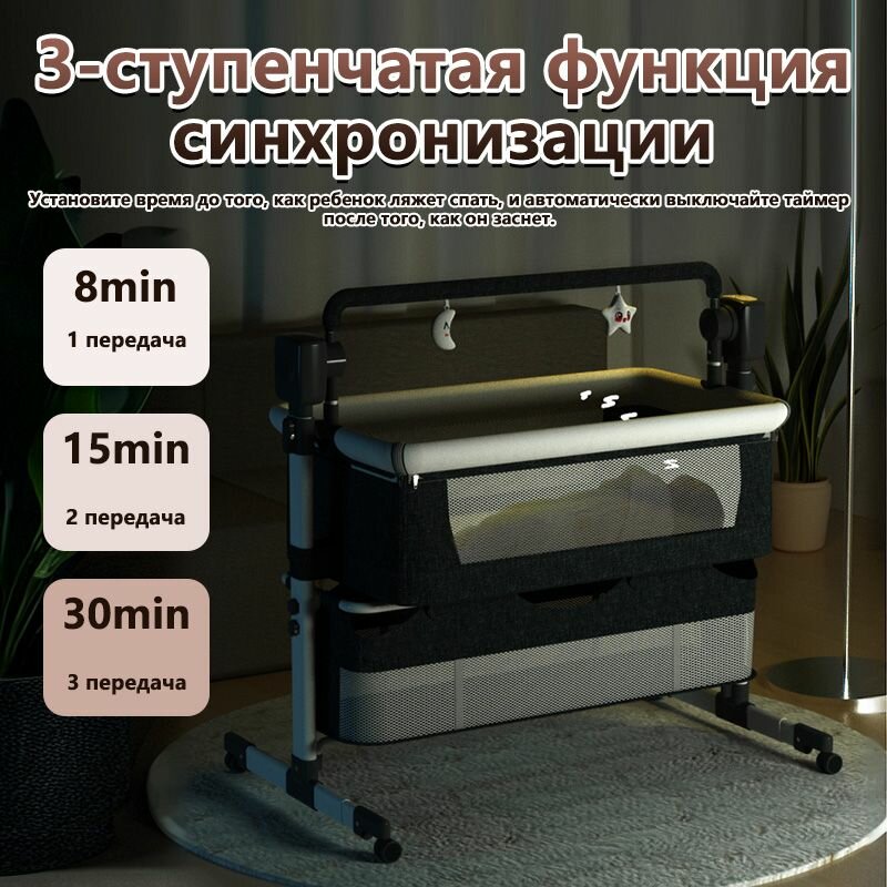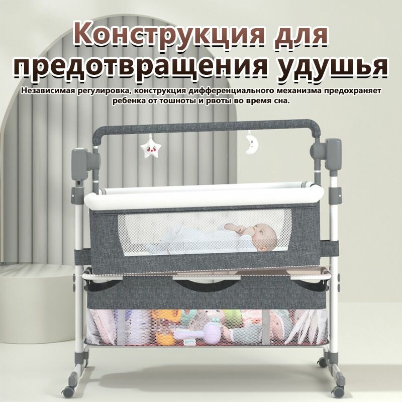 Кроватка для новорожденных HOMELINK WQGD-A40, с функцией автоматического качания, Темно-серый интересное: