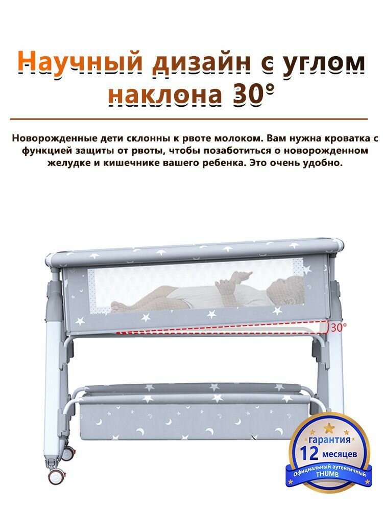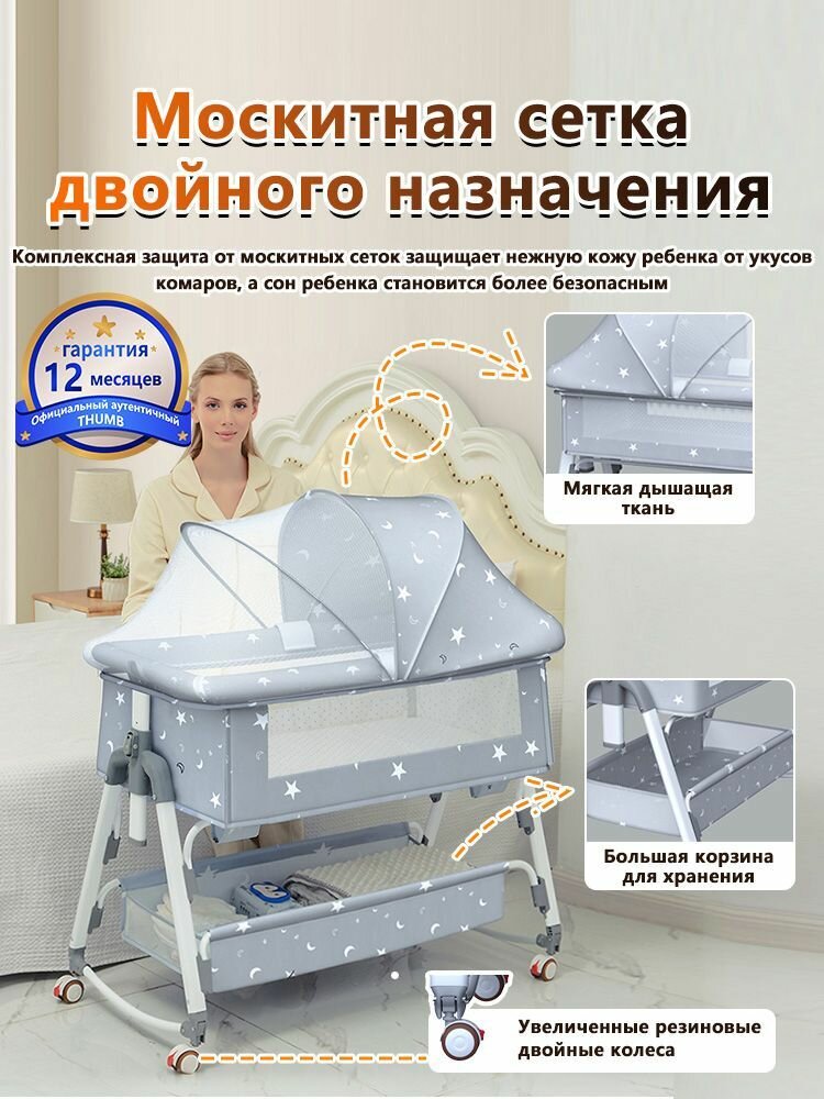 Приставная кроватка люлька для новорожденных 5в1 Lionelo Thomi Plus детская колыбель