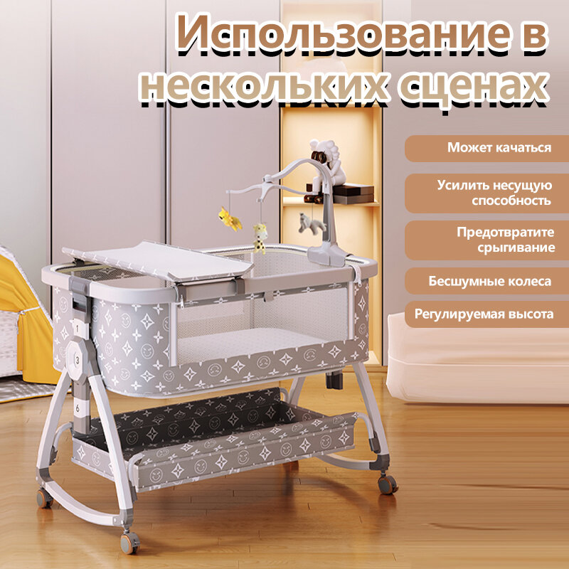 Многофункциональная кроватка из алюминиевого сплава, кроватку-колыбельку можно передвигать и складывать, текстура дерева