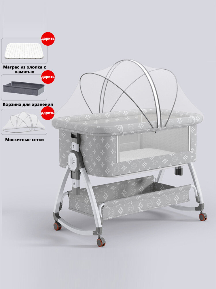 Многофункциональная детская кроватка из алюминиевого сплава, которую можно передвигать и складывать, серая
