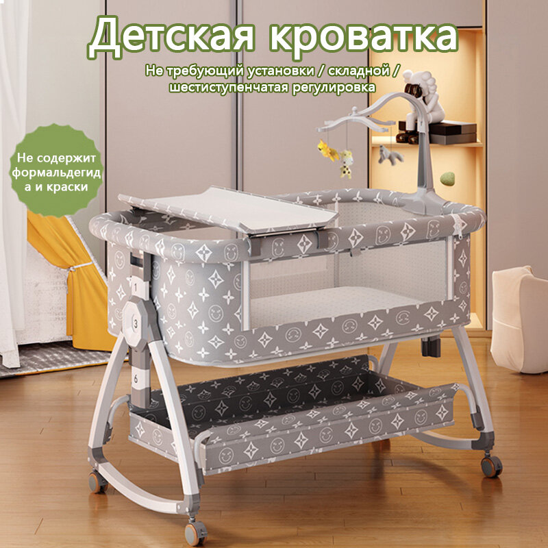 Купить Многофункциональная кроватка из алюминиевого сплава, которую можно передвигать и складывать, текстура дерева + граффити