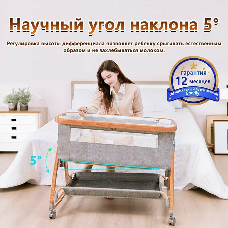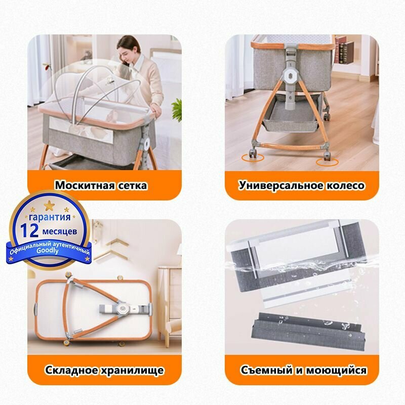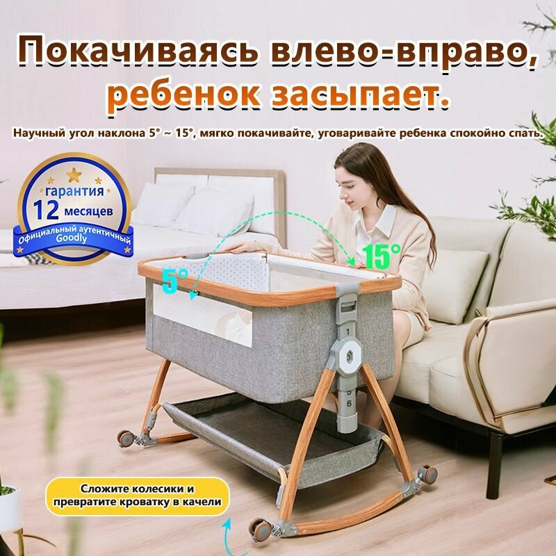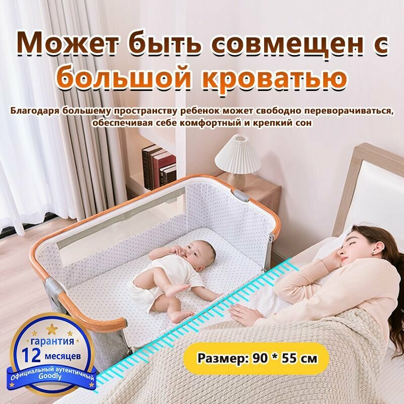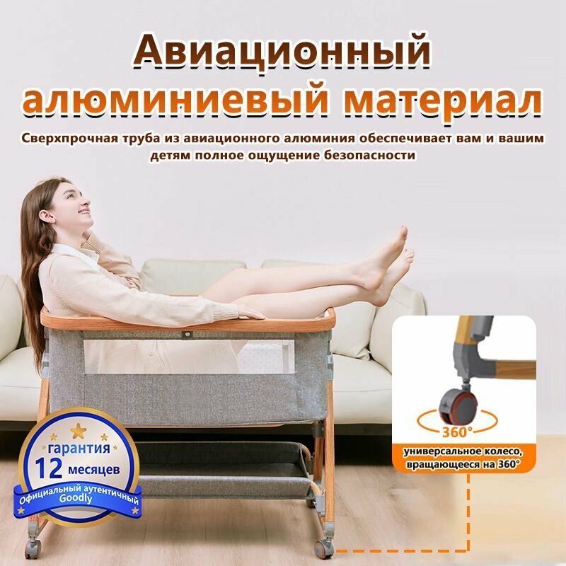 Многофункциональная кроватка из алюминиевого сплава, кроватку-колыбельку можно передвигать и складывать, текстура дерева