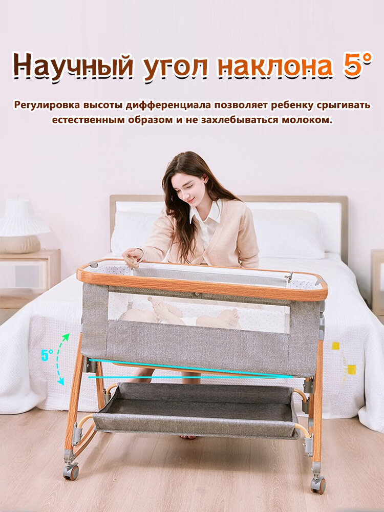 Купить Многофункциональная кроватка из алюминиевого сплава, кроватку-колыбельку можно передвигать и складывать, текстура дерева