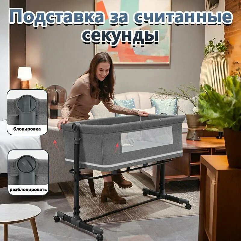 Колыбель Goodly 01, с маятниковым качанием, серая, для новорожденных интересное: