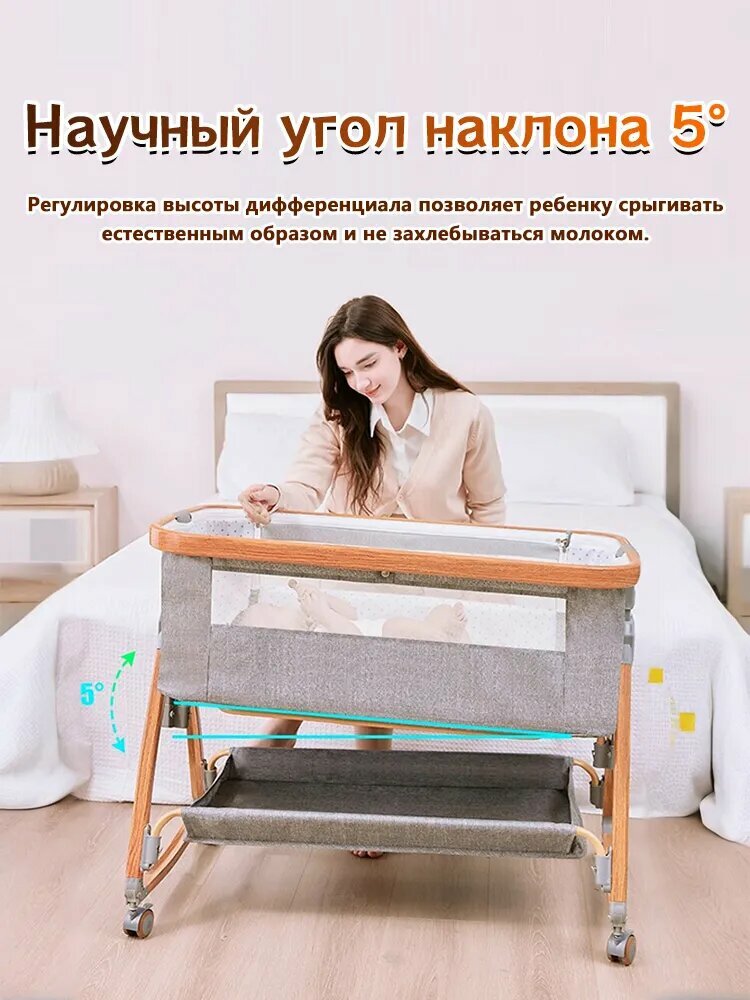 Приставная кроватка люлька для новорожденных 5в1 Lionelo Thomi Plus детская колыбель