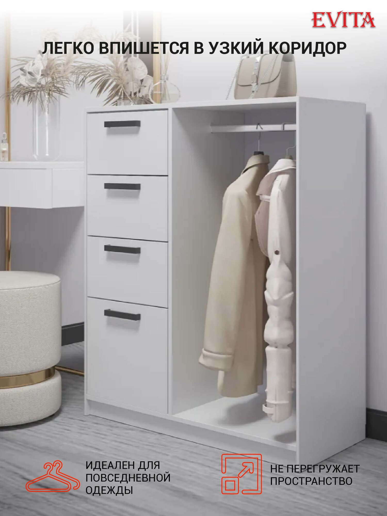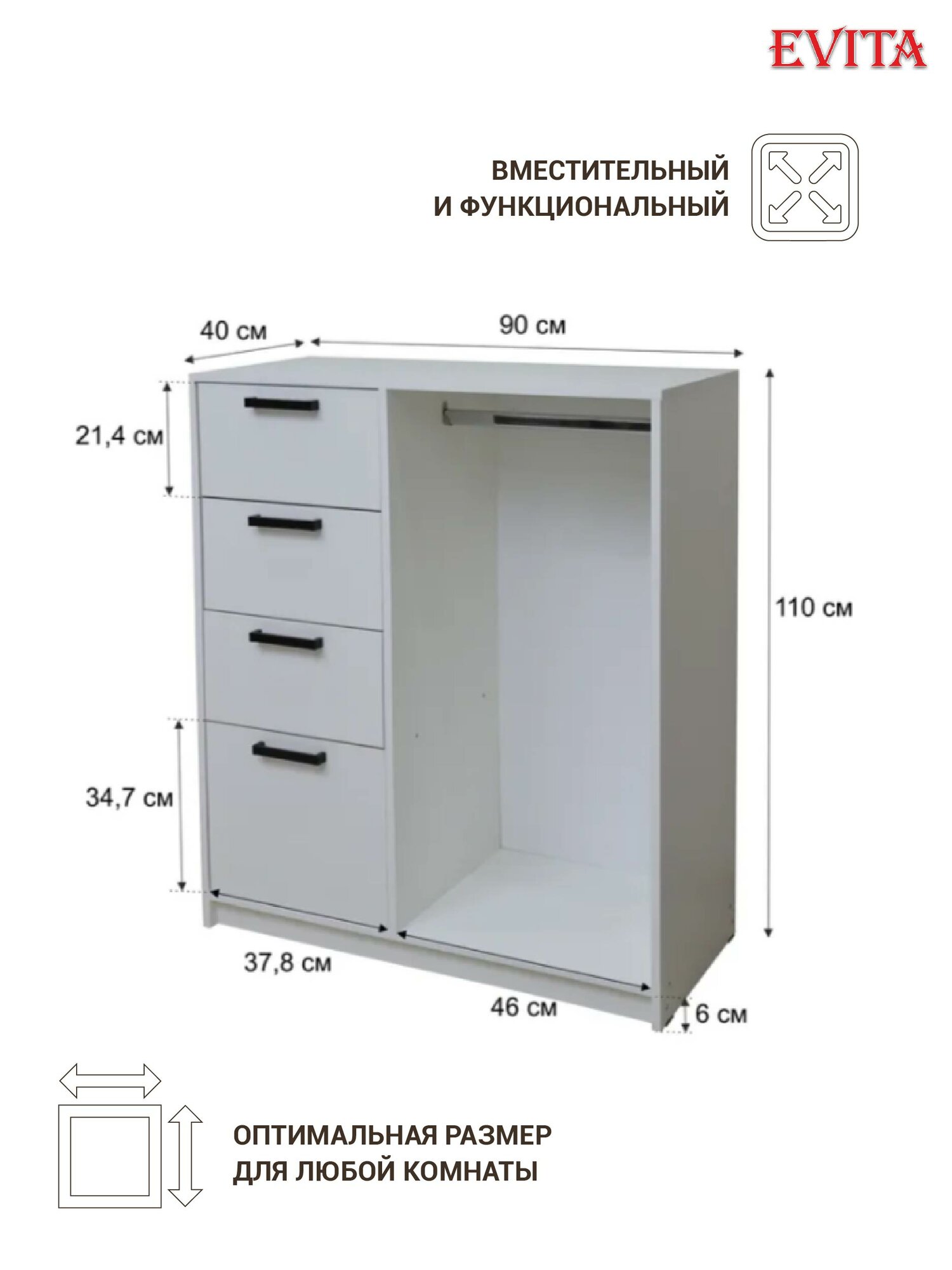 СохранитьКомод белый с ящиками 90х110х40 / шкаф для одежды / комод / вешалка напольная для одежды /шкаф пенал / гардеробная система интересное: