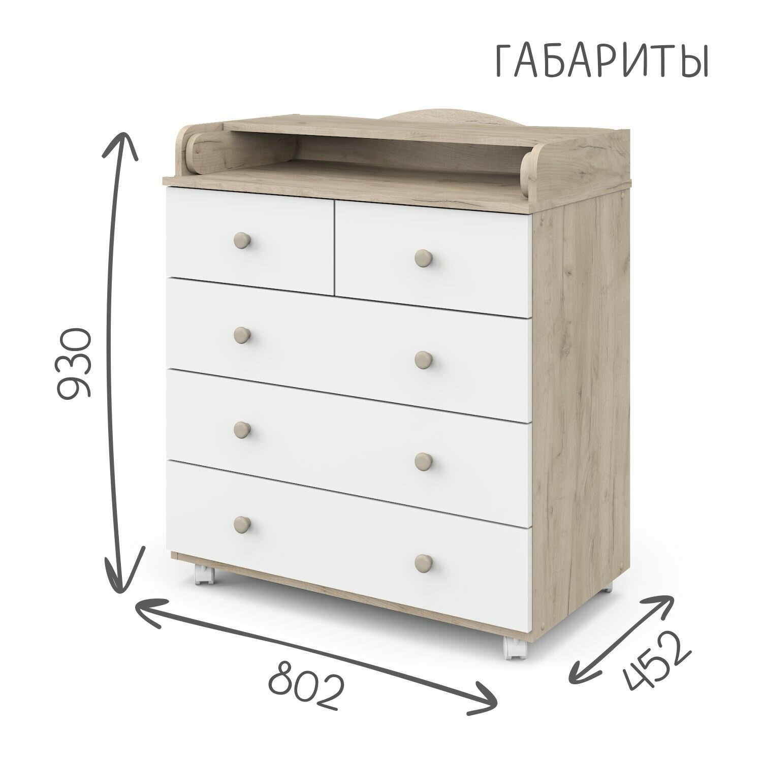 Комод пеленальный раскладной Gustav 805 ЛДСП на колесах дуб крафт серый белый интересное:
