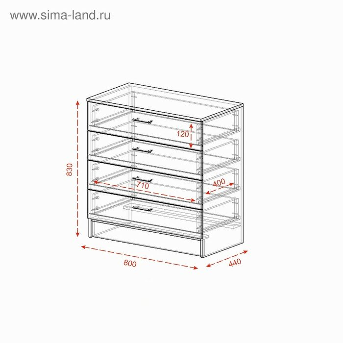 Купить Комод К800 Белый гладкий, ЛДСП, с ящиками, для спальни, прихожей, гостиной, 800х830х440, ЭРА