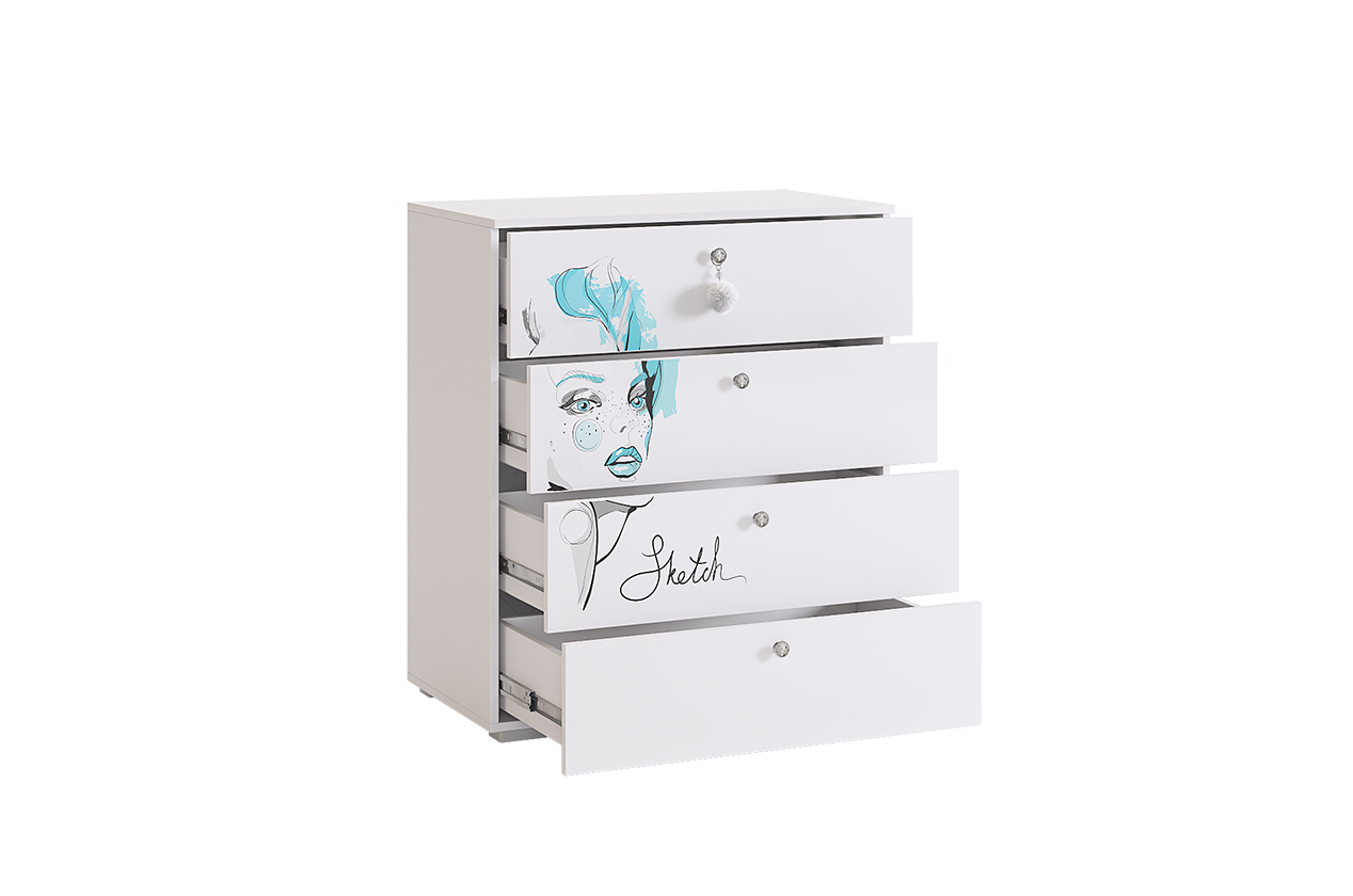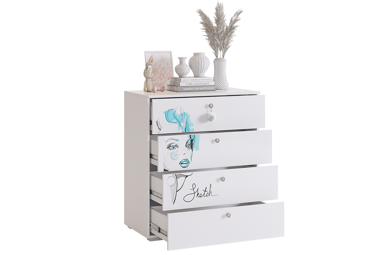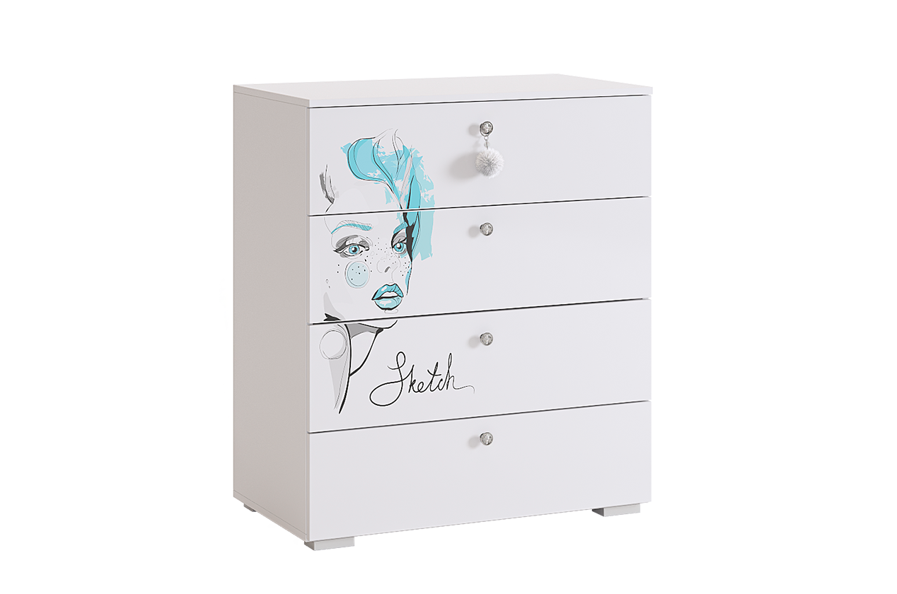 Купить Комод для одежды Гламур, белый глянцевый с рисунком и стразами на ручках, 80*45*92 см.