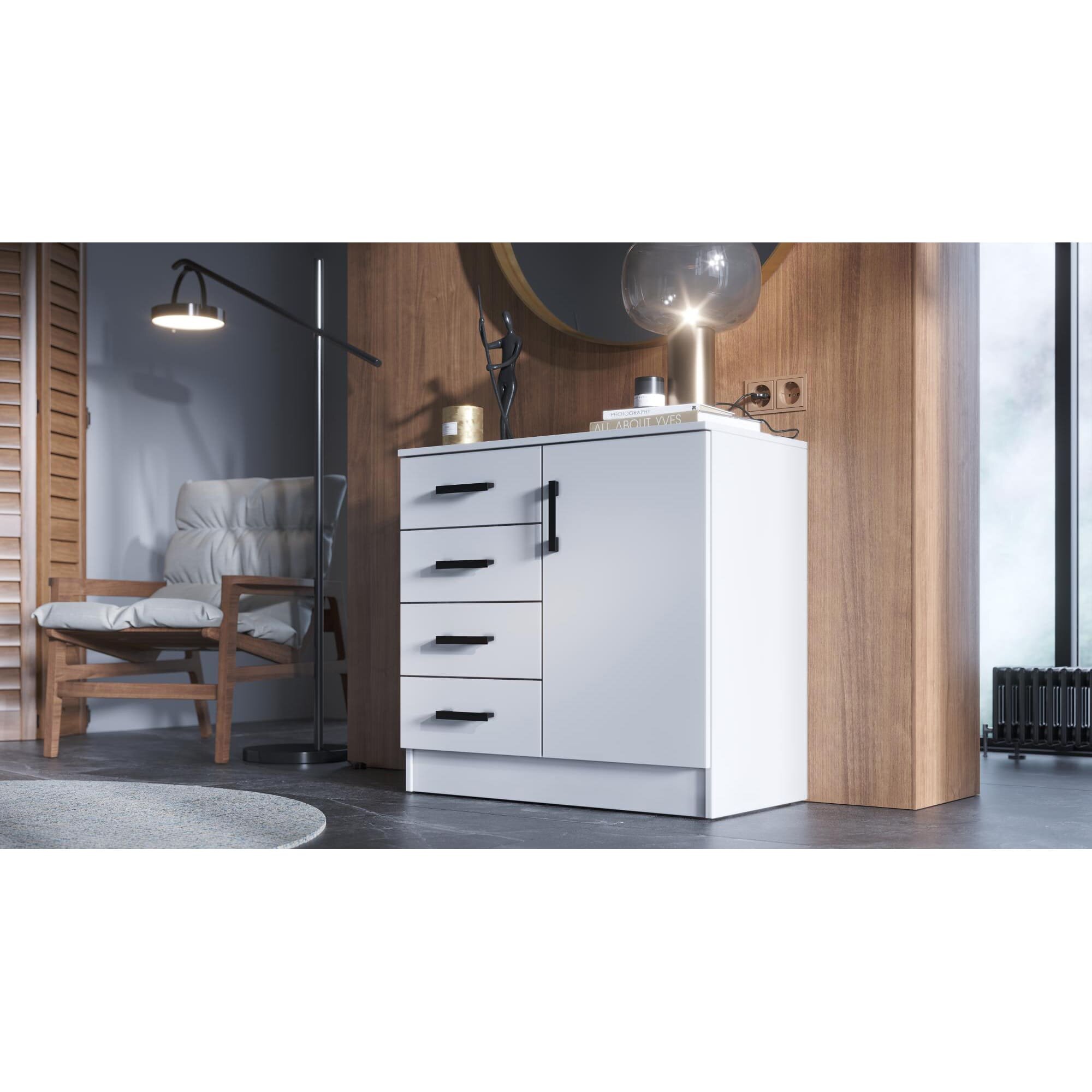 Комод К800-1Д Белый гладкий , ЛДСП, с полками, ящиками для спальни, прихожей, гостиной, 800х830х440, ЭРА интересное: