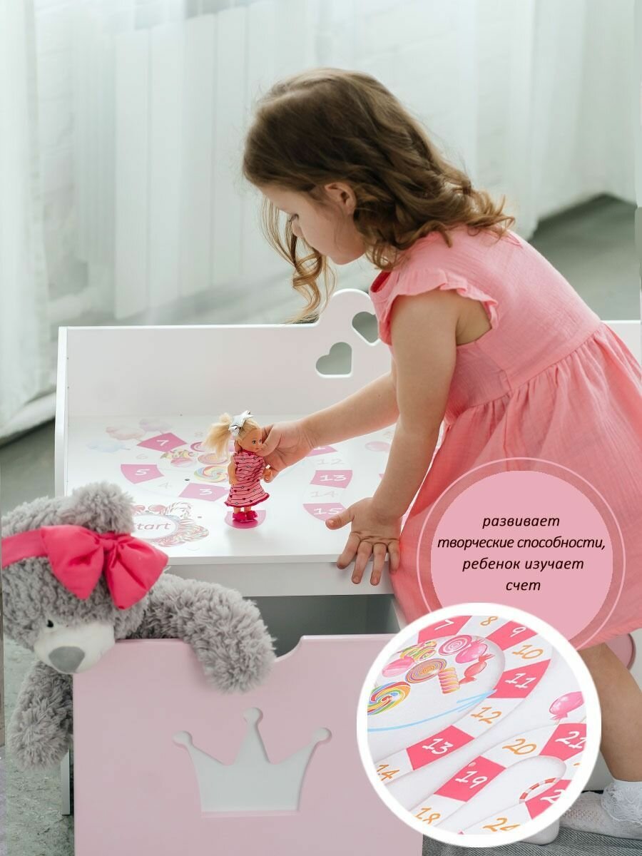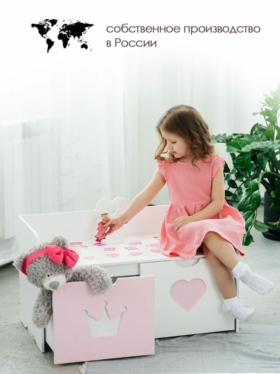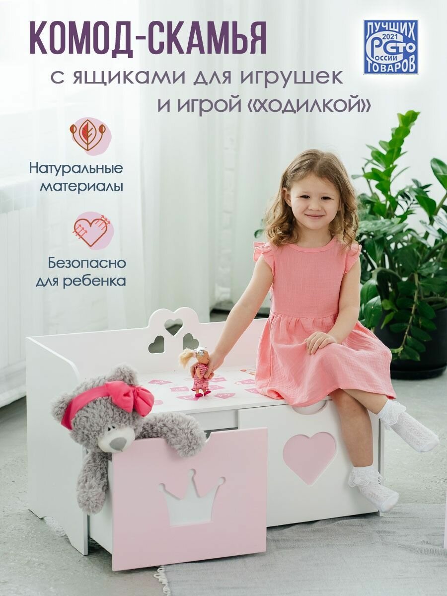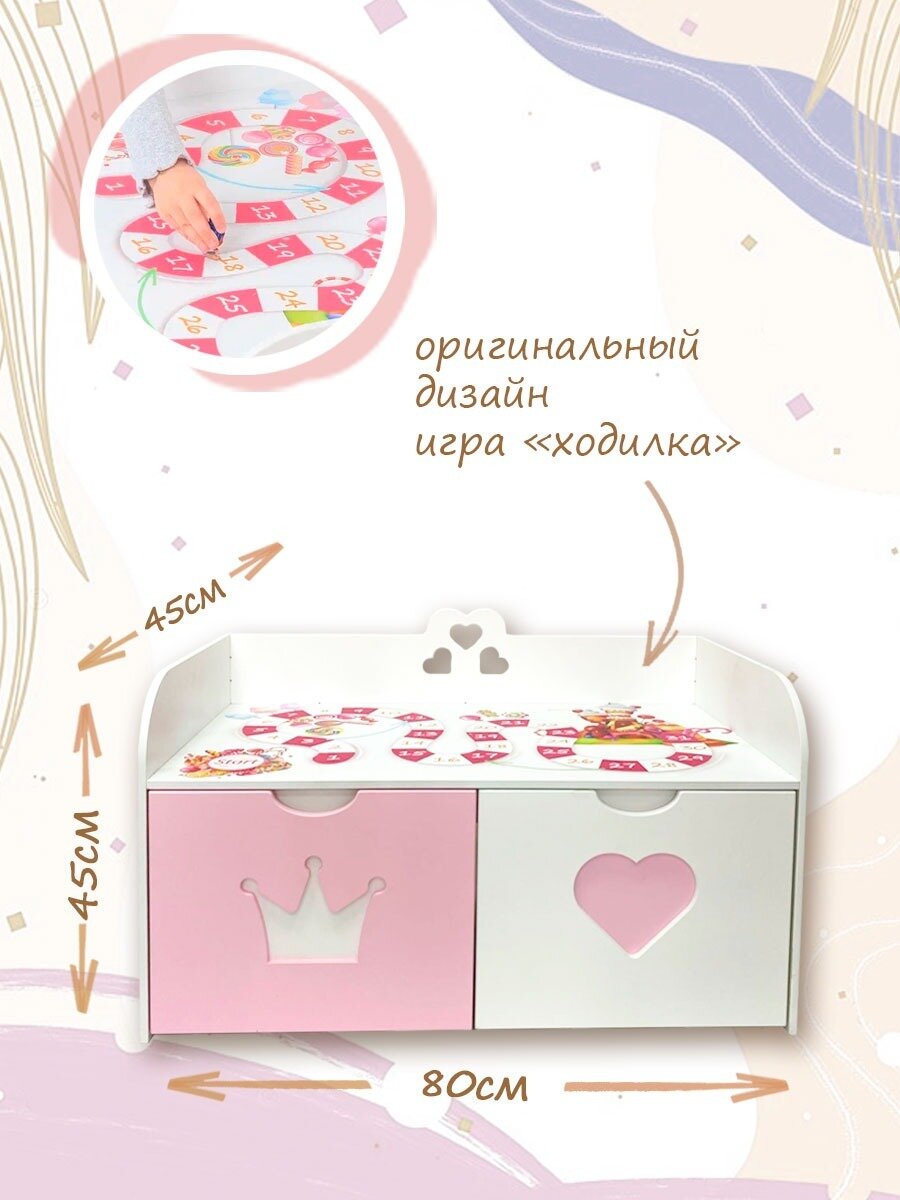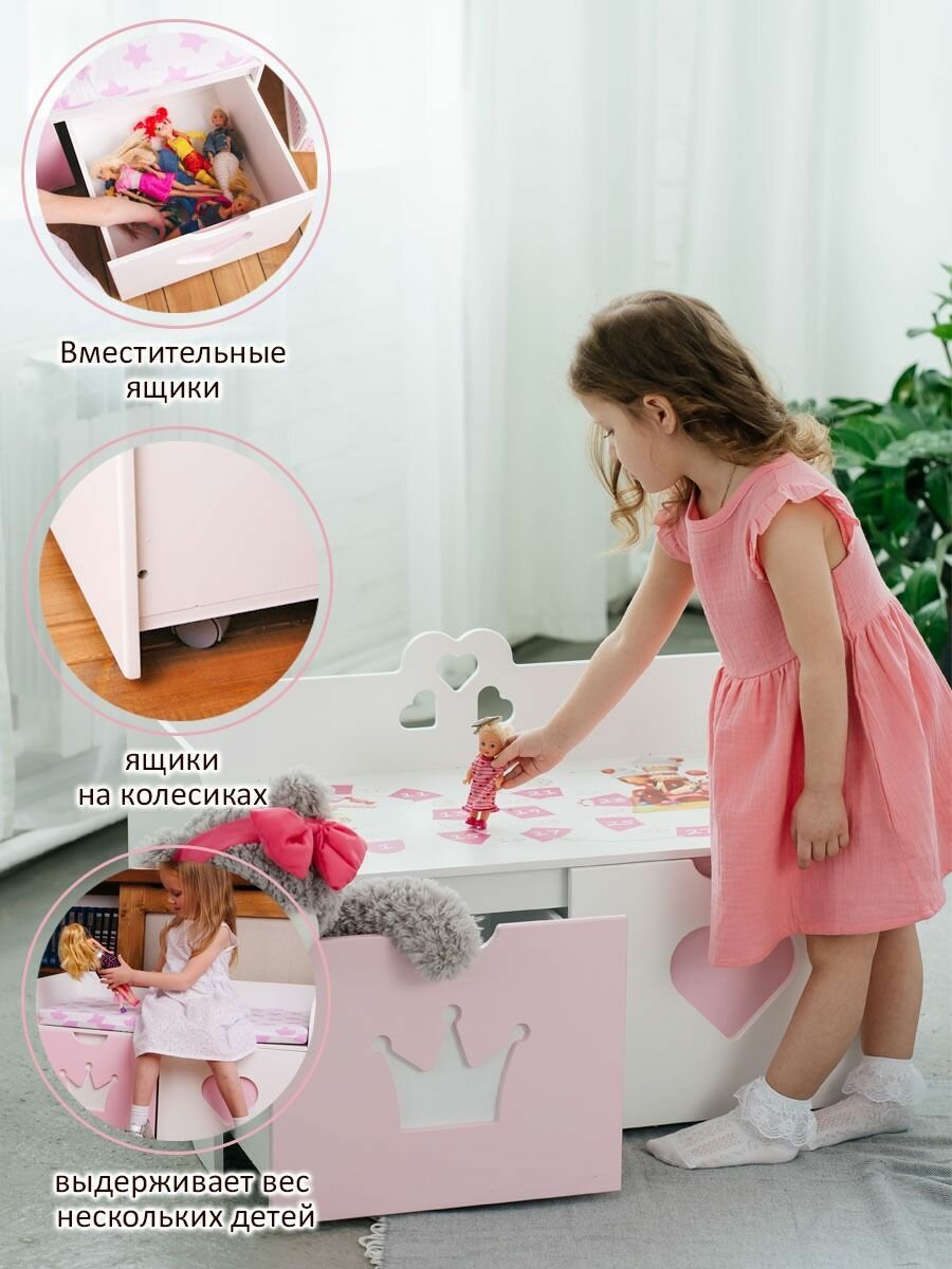 Комод-скамья розовый 80 с ящиками для игрушек, с принтом, Мебель в детскую интересное: