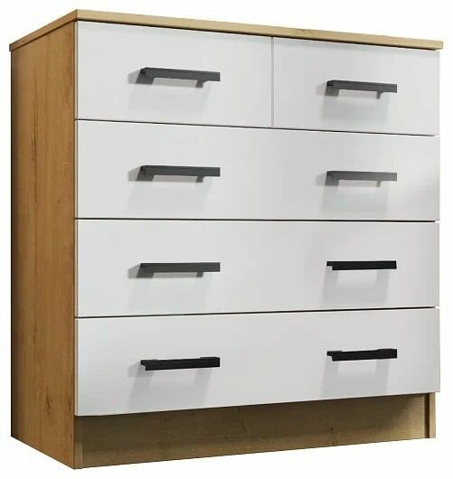 Комод К800 3/2 Дуб Вотан/Белый гладкий, ЛДСП, с ящиками, для спальни, прихожей, гостиной, 800x830x440, ЭРА интересное: