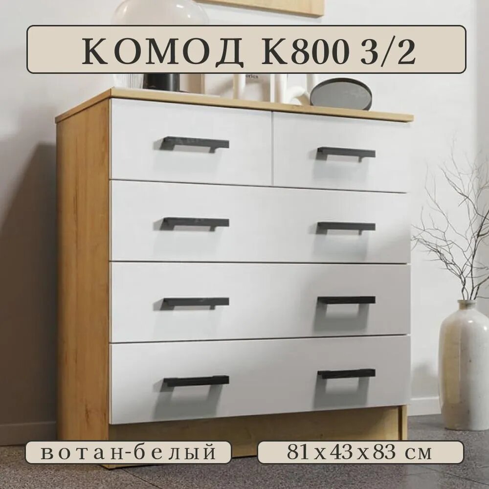 Купить Комод К800 3/2 Дуб Вотан/Белый гладкий, ЛДСП, с ящиками, для спальни, прихожей, гостиной, 800x830x440, ЭРА