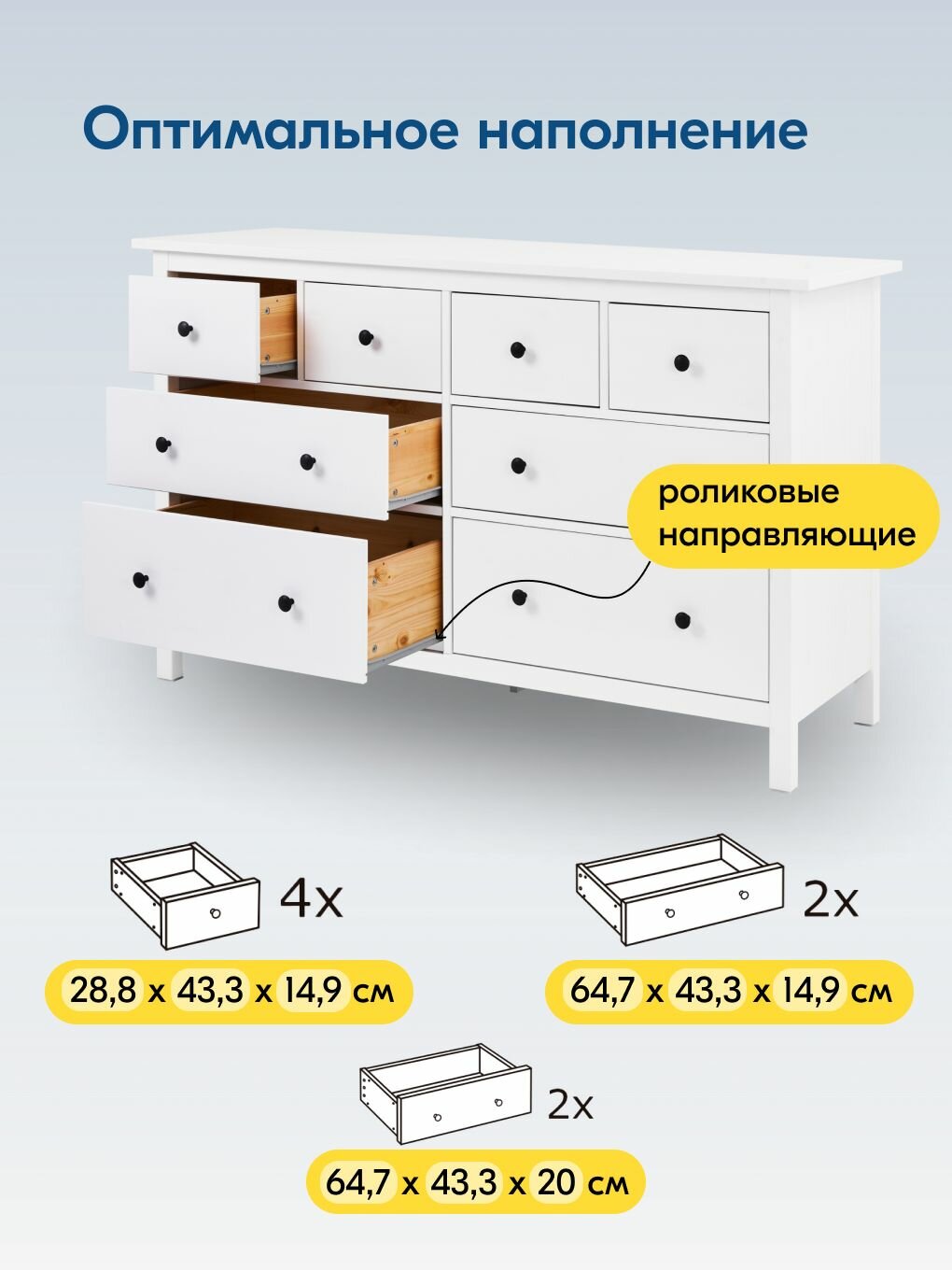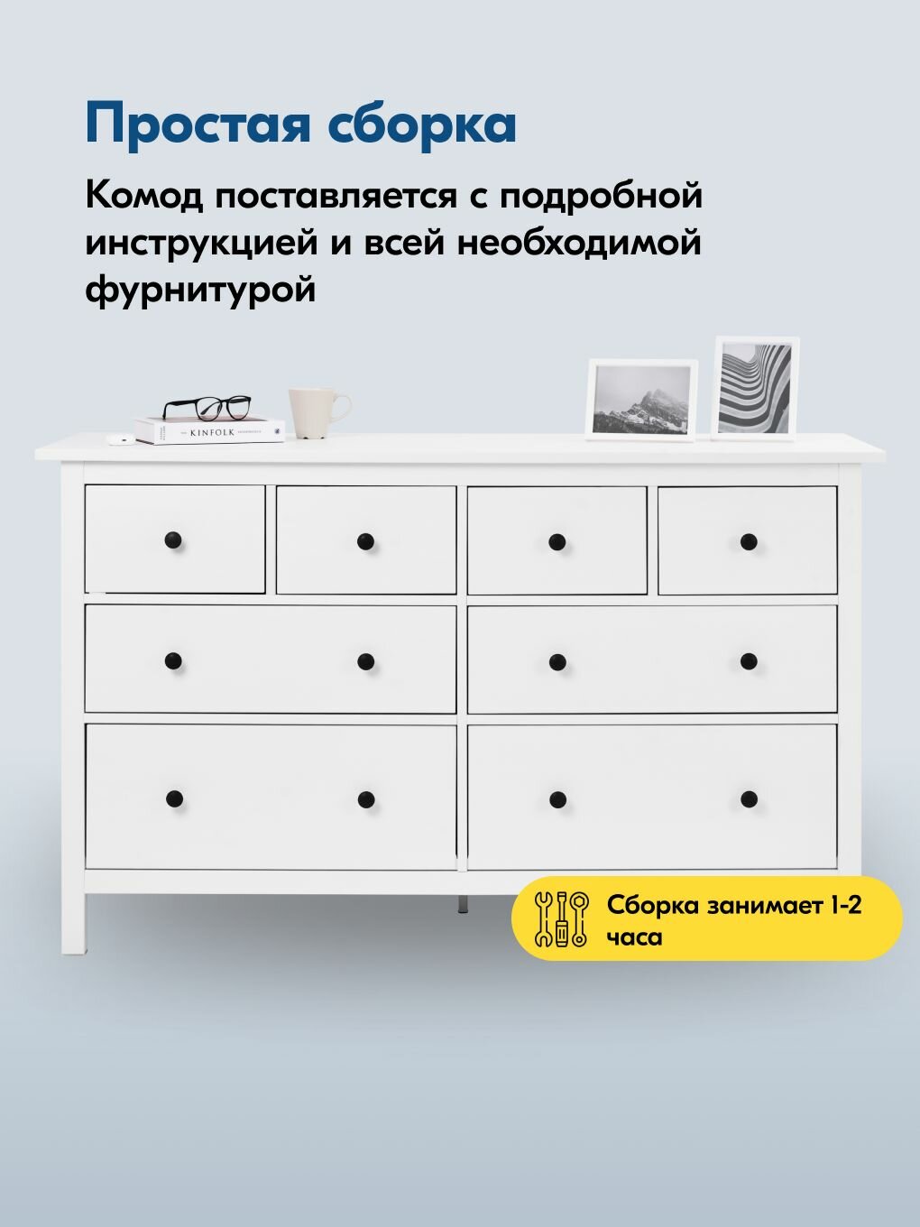Комод КЫМОР 8 ящиков 160х96х50 цвет белый, из массива дерева интересное: